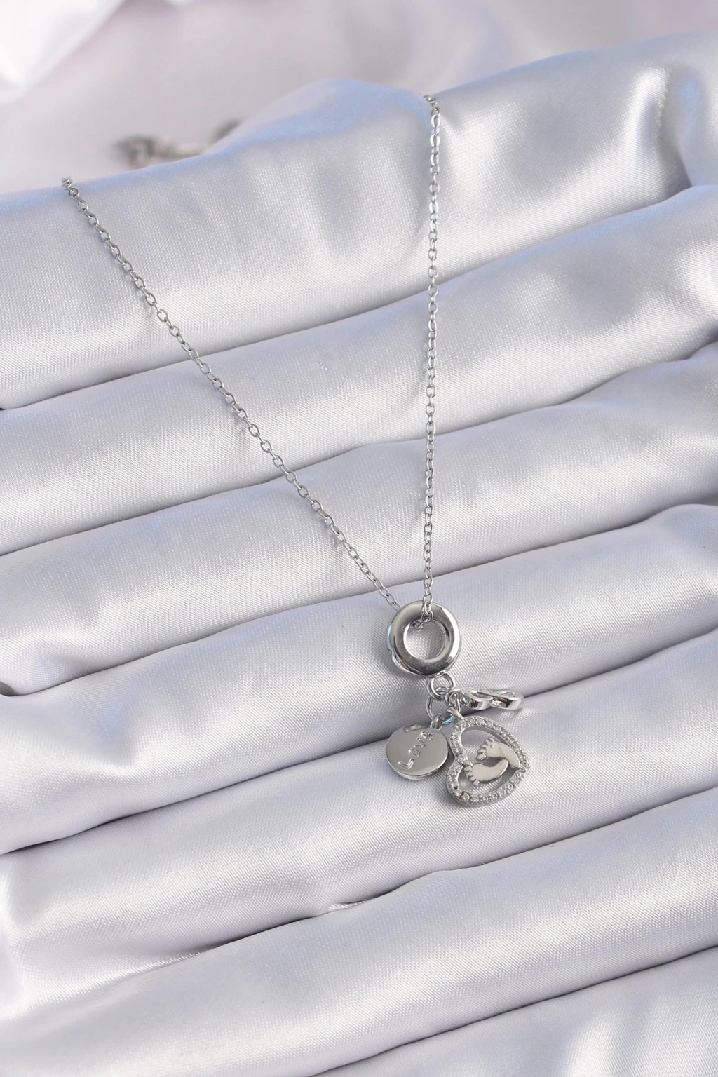 BFS 316L Çelik Gümüş Renk Zirkon Taş Detay Kalp Model Charm Kadın Kolye
