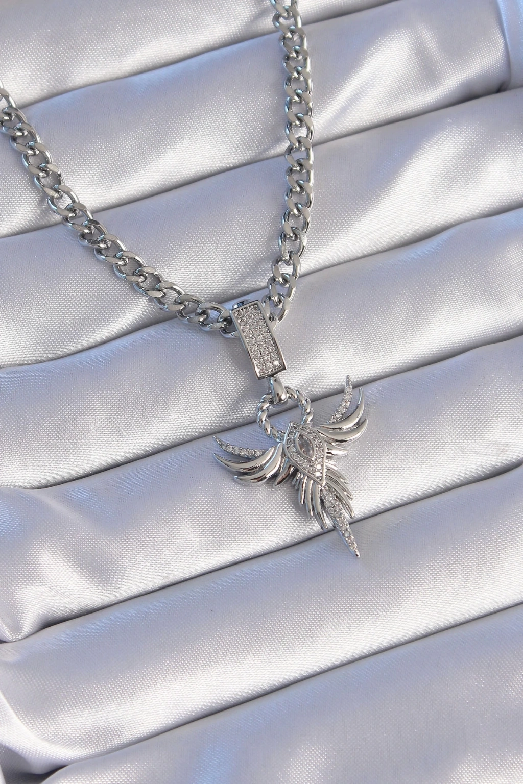 BFS 316L Çelik Gümüş Renk Zirkon Taşlı Anka Kuşu Model Kolye