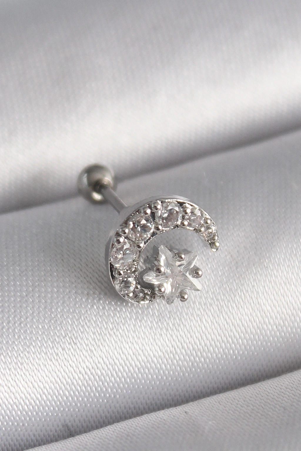 BFS 316L Çelik Gümüş Renk Zirkon Taşlı Ay Yıldız Tragus Piercing
