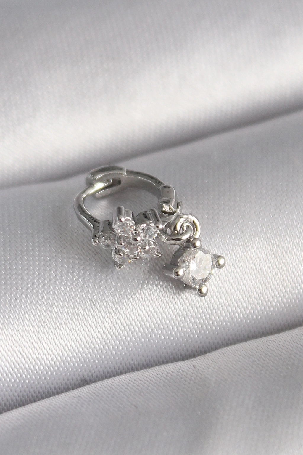 BFS 316L Çelik Gümüş Renk Zirkon Taşlı Çiçek Model Sallantı Detay Tragus Piercing