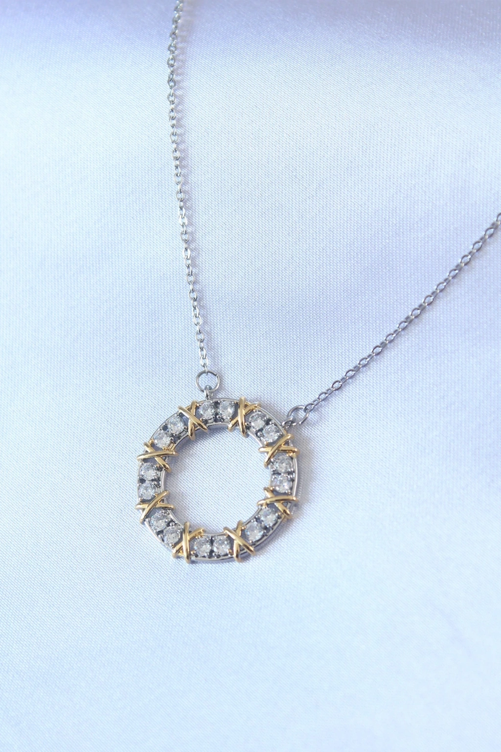 BFS 316L Çelik Gümüş Renk Zirkon Taşlı Gold Detay Xoxo Kadın Kolye