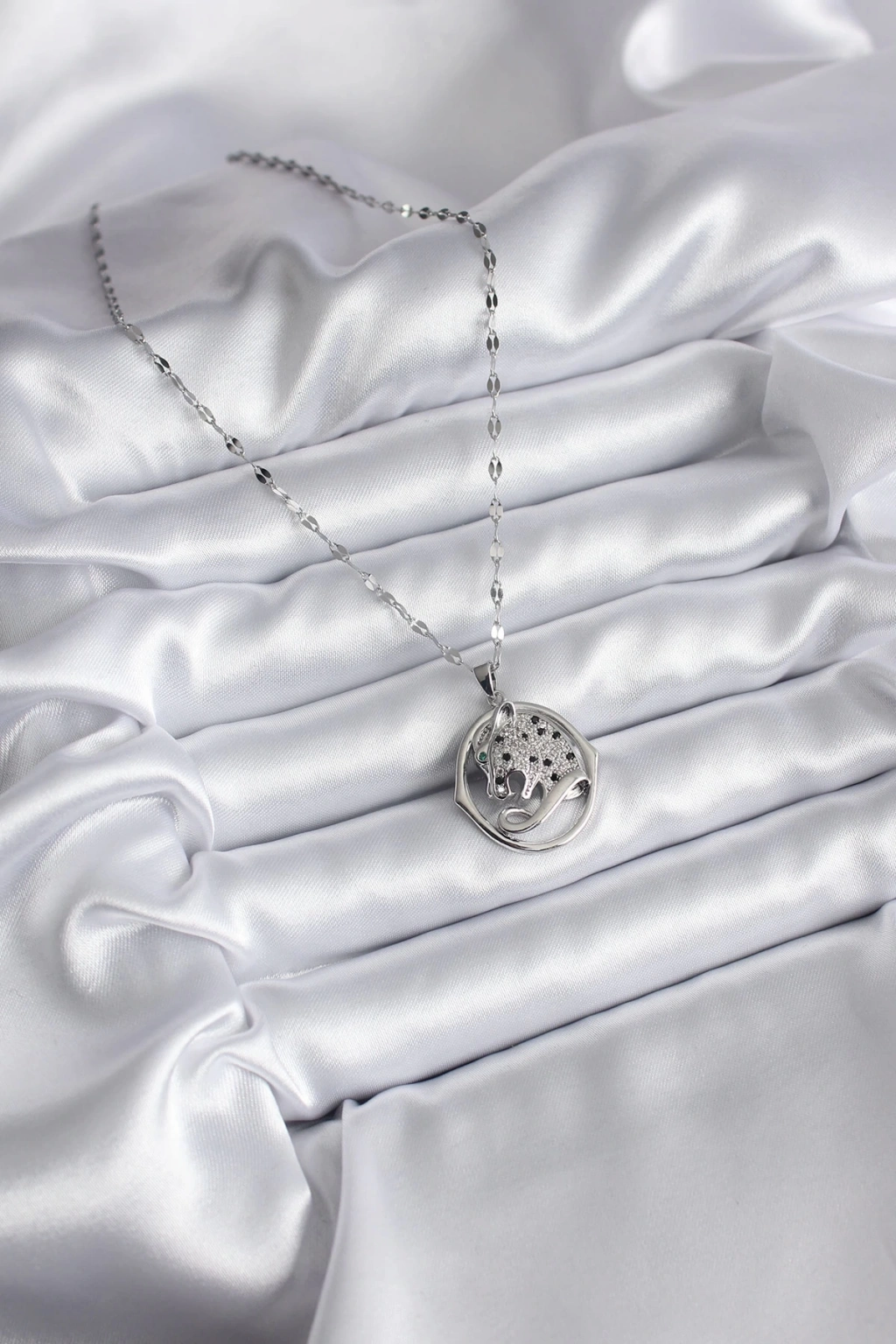 BFS 316L Çelik Gümüş Renk Zirkon Taşlı Jaguar Model Kadın Kolye