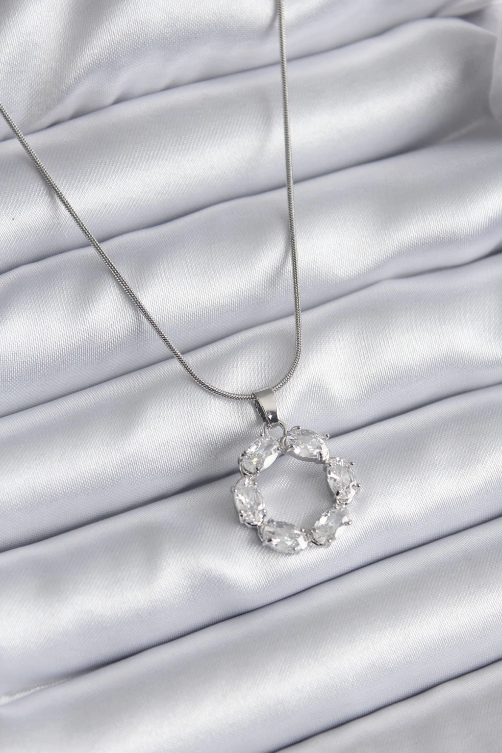BFS 316L Çelik Gümüş Renk Zirkon Taşlı Kadın Kolye