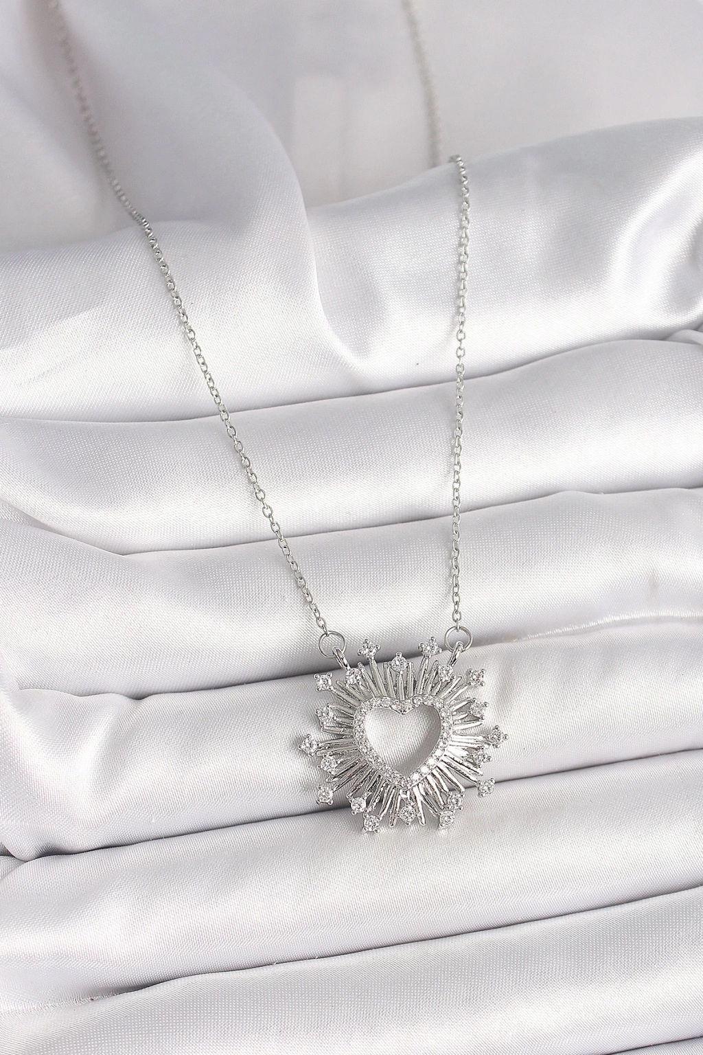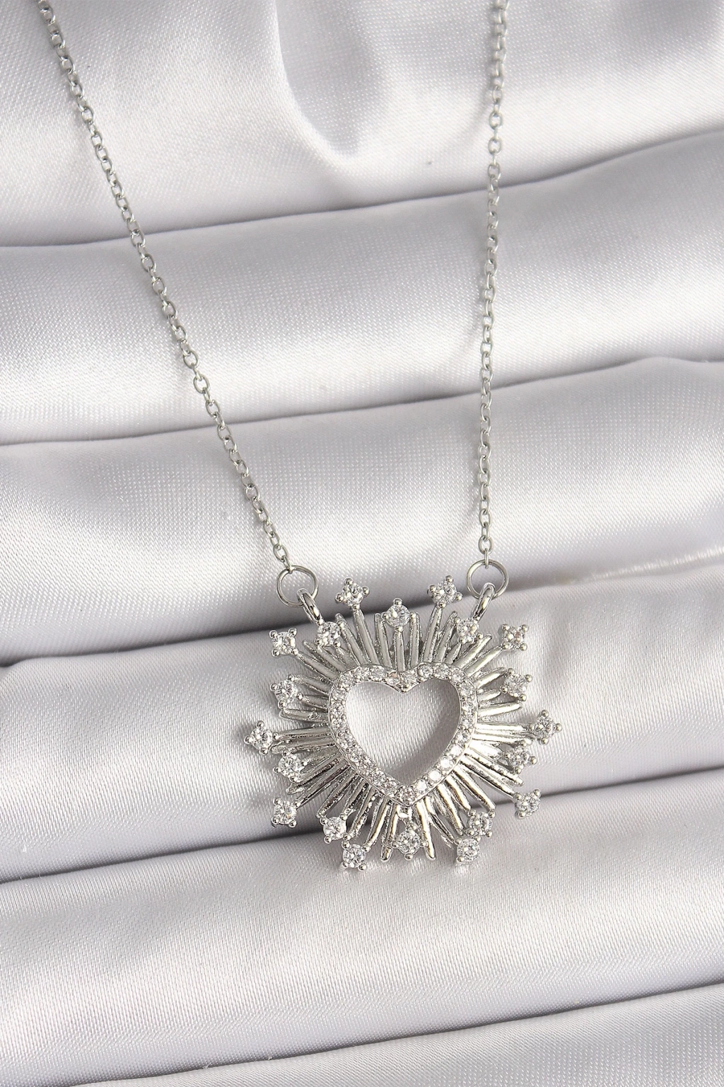 BFS 316L Çelik Gümüş Renk Zirkon Taşlı Kalp Model Kadın Kolye