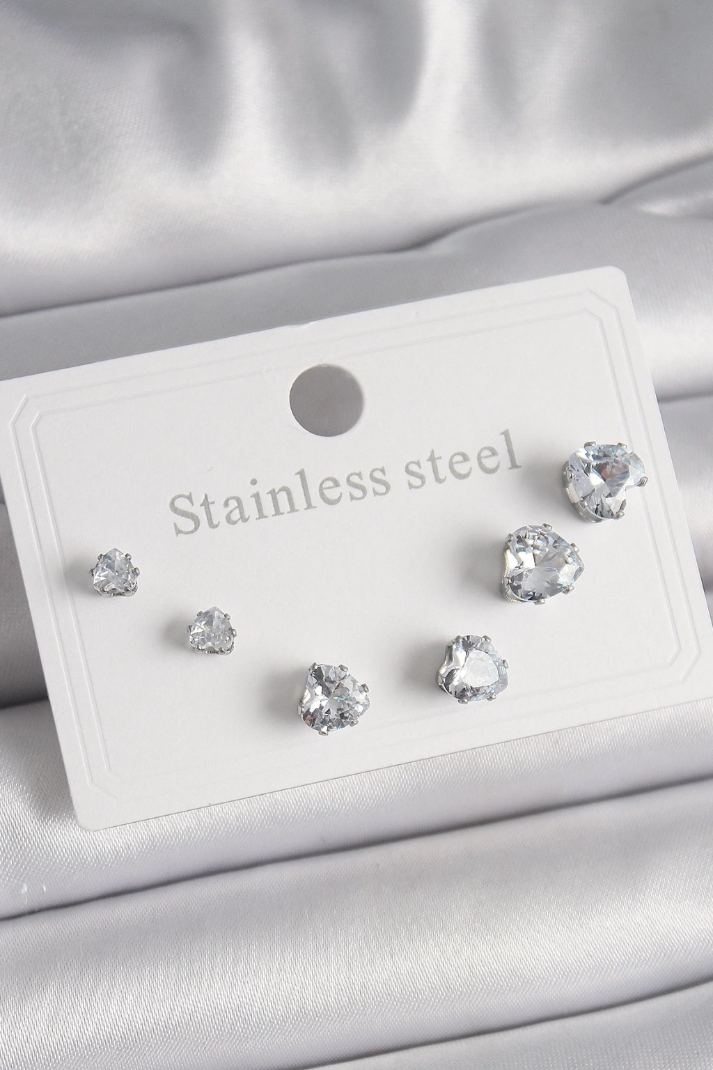 BFS 316L Çelik Gümüş Renk Zirkon Taşlı Kalp Model Kadın Küpe Seti