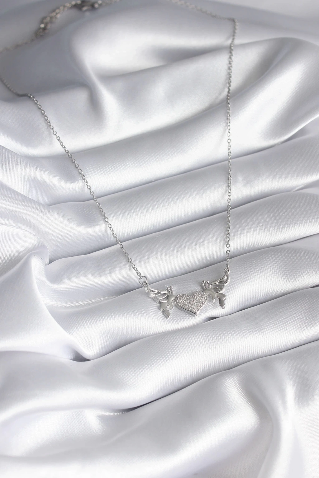 BFS 316L Çelik Gümüş Renk Zirkon Taşlı Kanat Kalp Model Kadın Kolye