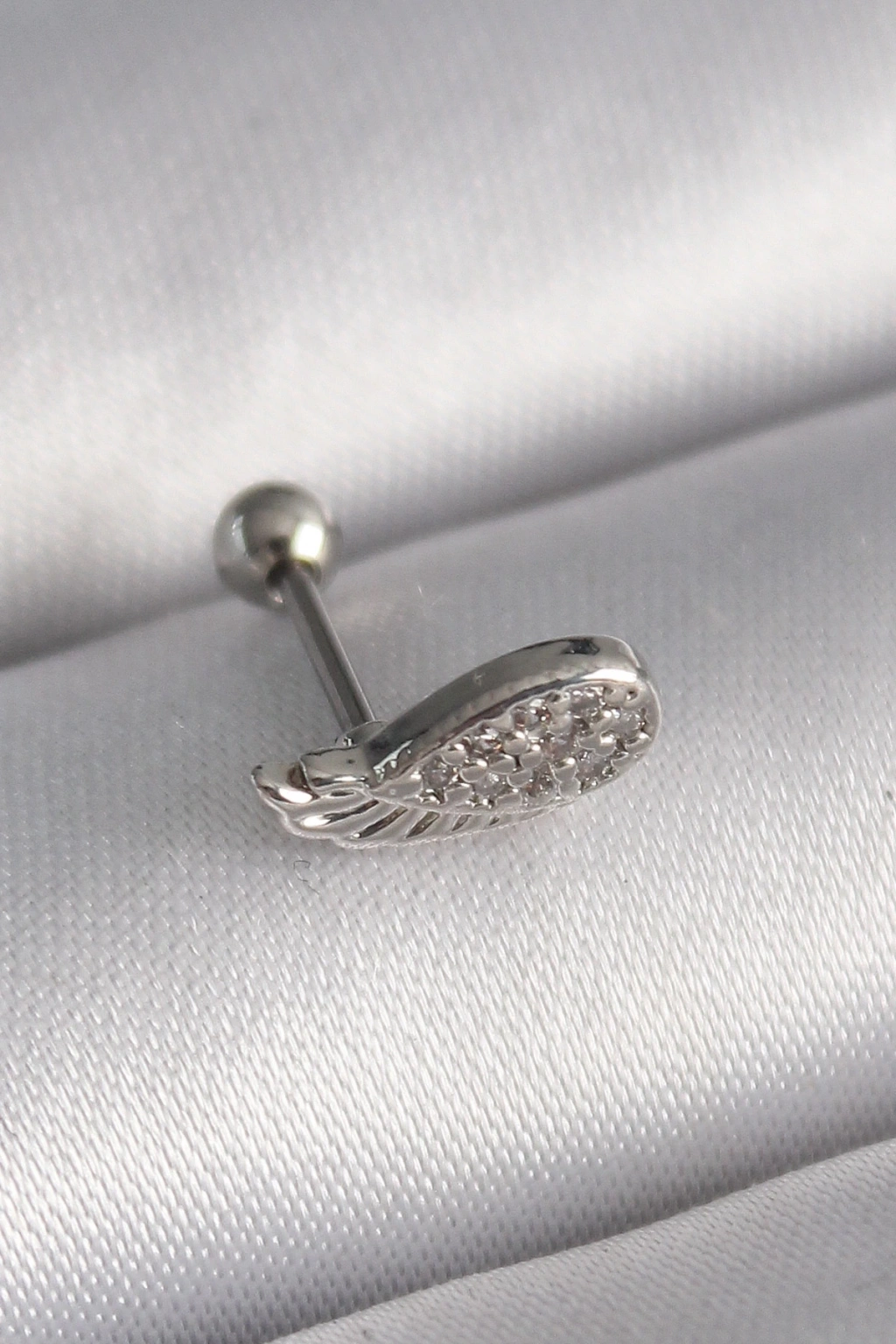 BFS 316L Çelik Gümüş Renk Zirkon Taşlı Kanat Tragus Piercing