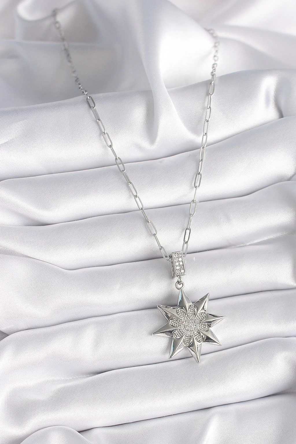 BFS 316L Çelik Gümüş Renk Zirkon Taşlı Kutup Yıldızı Model Kadın Kolye