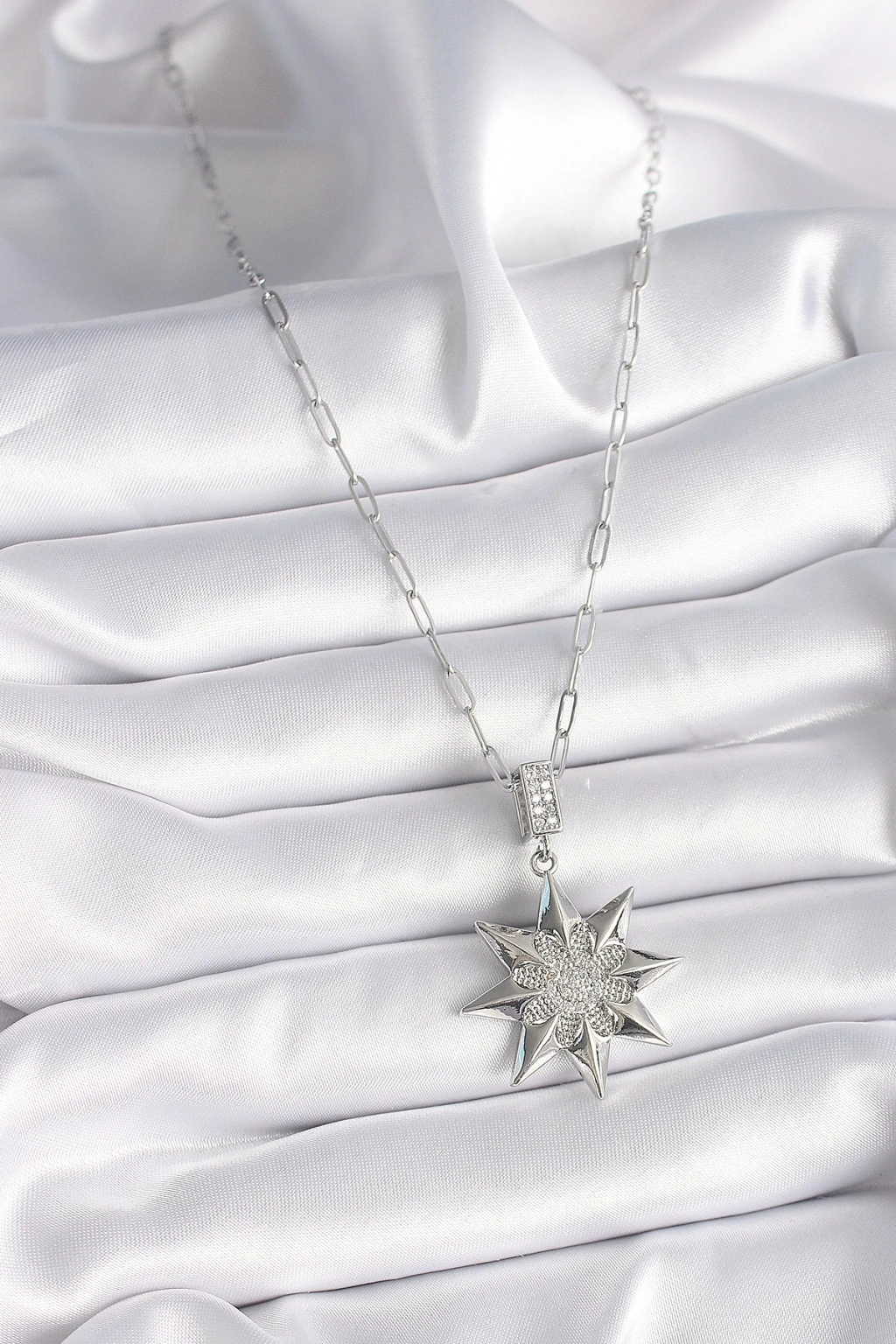 BFS 316L Çelik Zincir Gümüş Renk Kutup Yıldızı Model Kadın Kolye