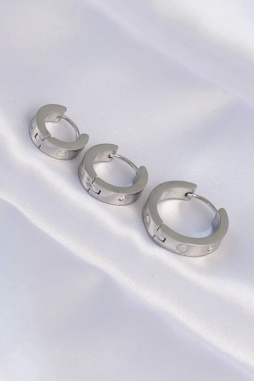 BFS 316L Çelik Gümüş Renk Zirkon Taşlı Model 3lü Halka Küpe