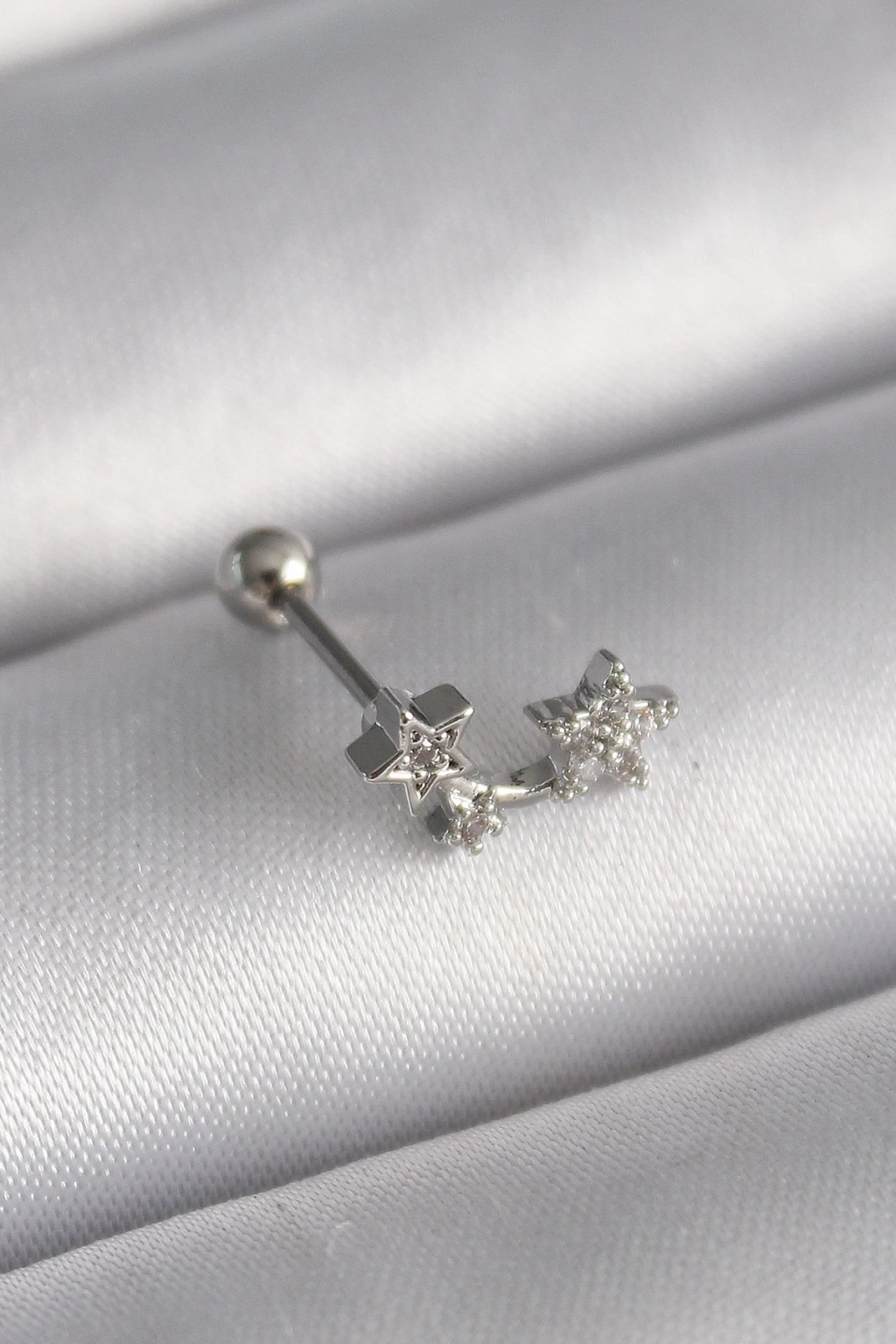 BFS 316L Çelik Gümüş Renk Zirkon Taşlı Yıldız Model Tragus Piercing
