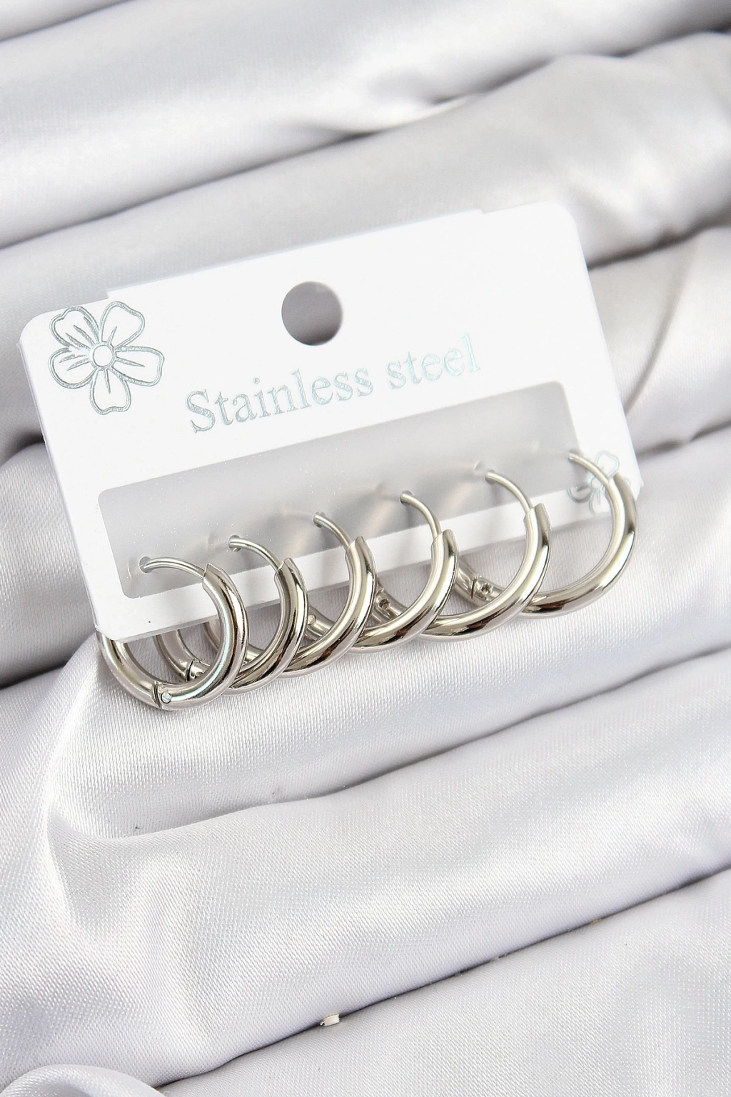 BFS 316L Çelik Halka Model Gümüş Renk 3'lü Set Kadın Küpe