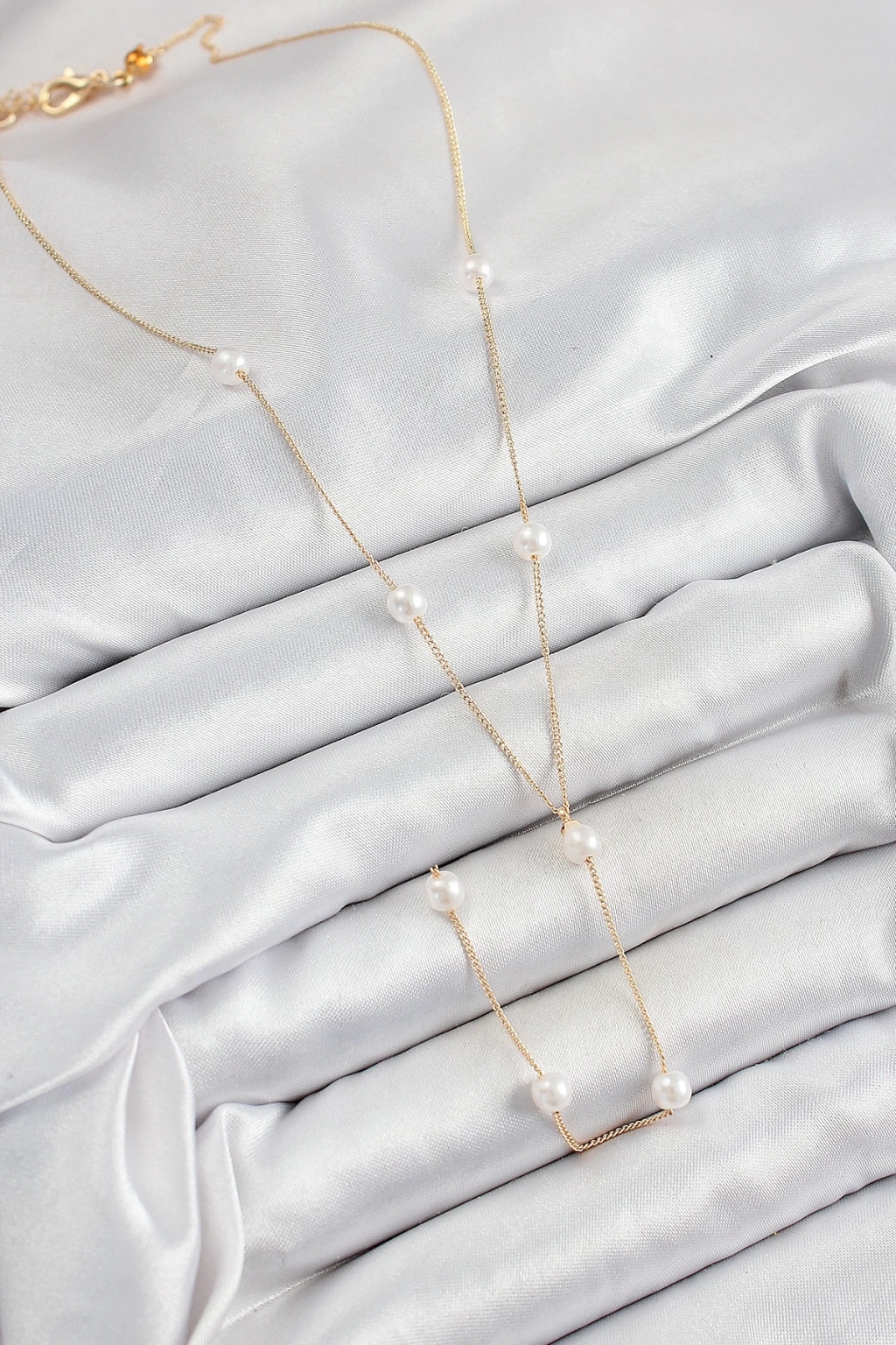 BFS 316L Çelik İnci Figürlü Y Model Gold Renk Kadın Kolye