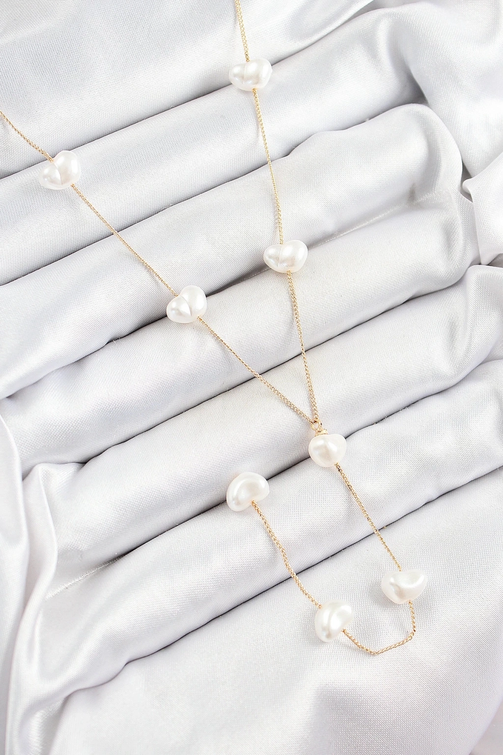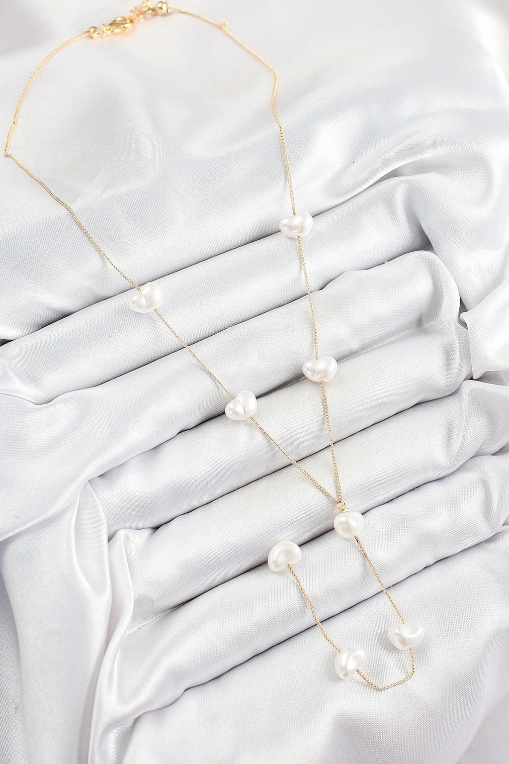 BFS 316L Çelik İncili Kalp Figürlü Y Model Gold Renk Kadın Kolye
