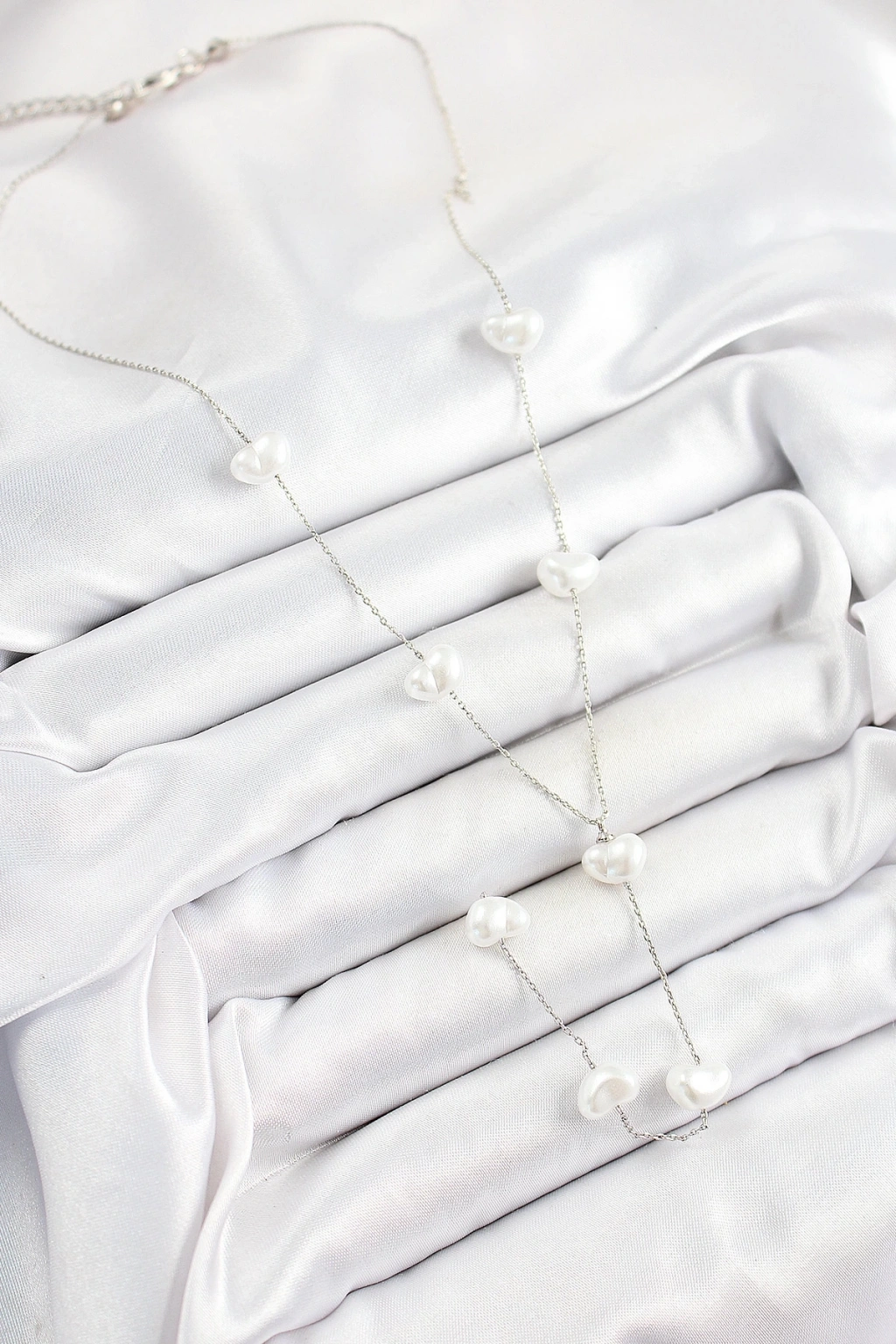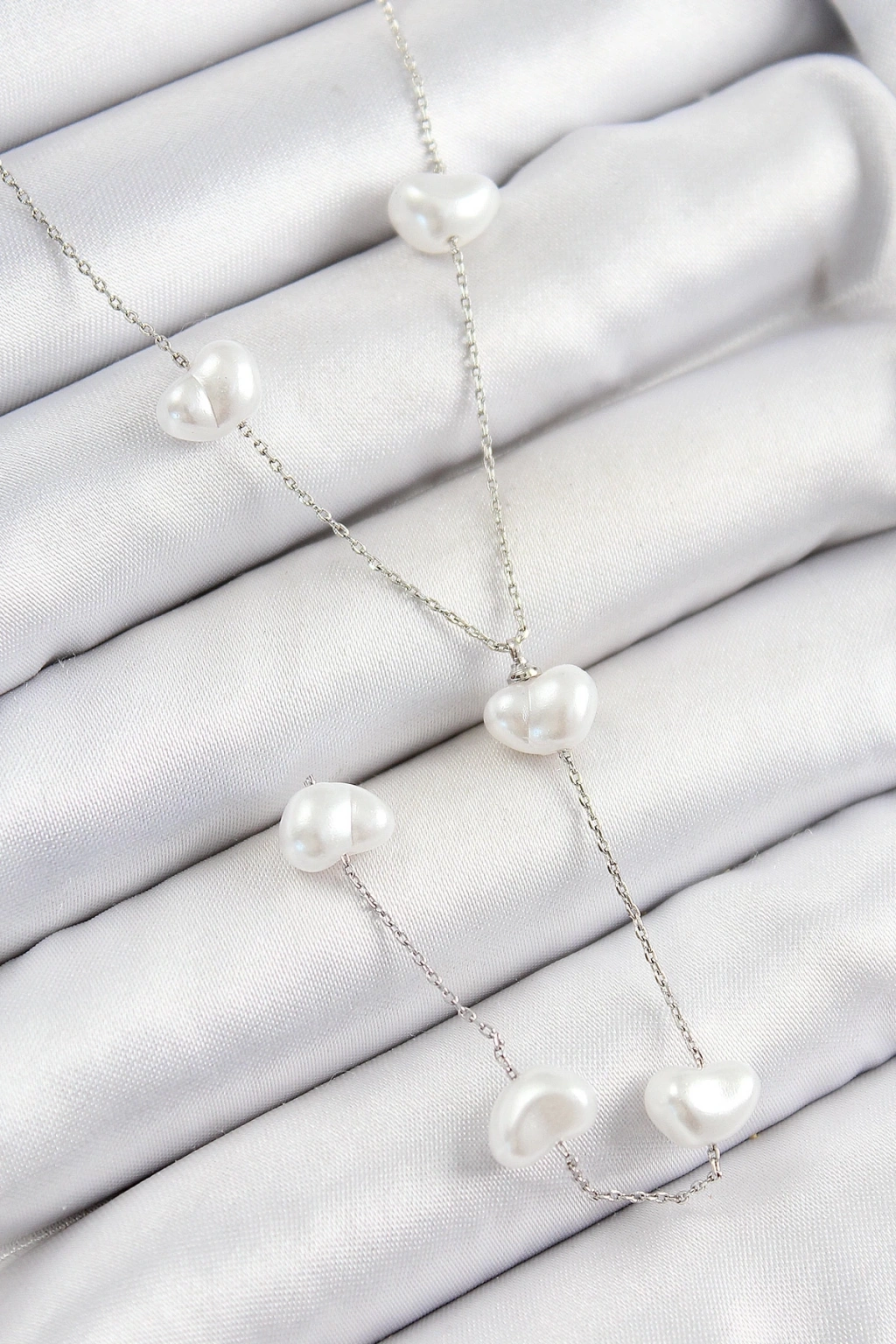 BFS 316L Çelik İncili Kalp Figürlü Y Model Gümüş Renk Kadın Kolye