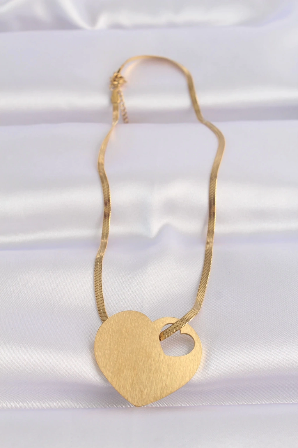 BFS 316L Çelik İtalyan Zincir Altın Renk Düz Plaka Kalp Kolye