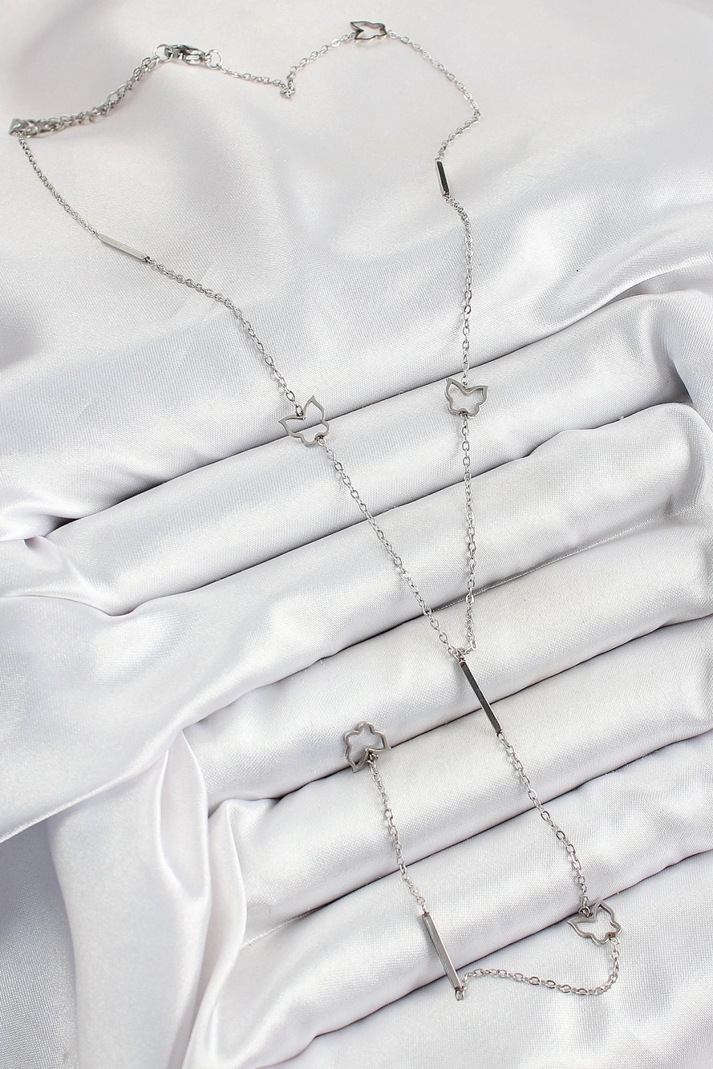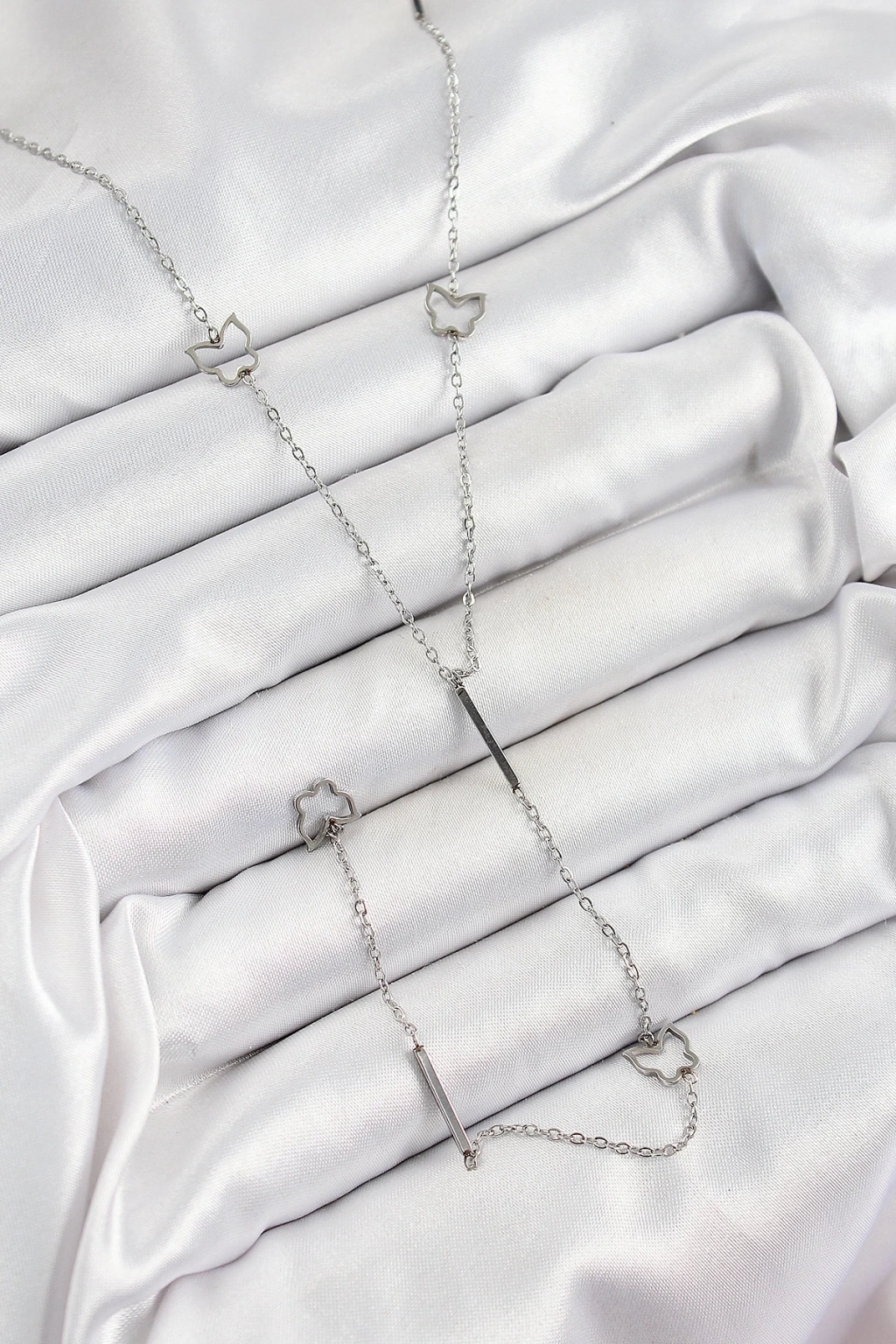 BFS 316L Çelik Kelebek Figürlü Y Model Gümüş Renk Kadın Kolye