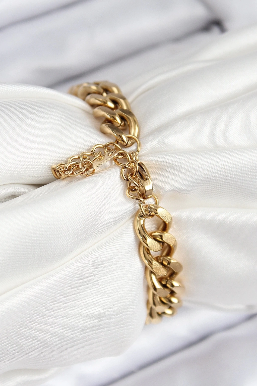 BFS 316L Çelik Klasik Kalın Zincir Model Gold Renk Kadın Bileklik