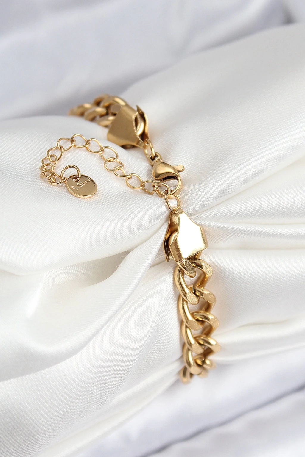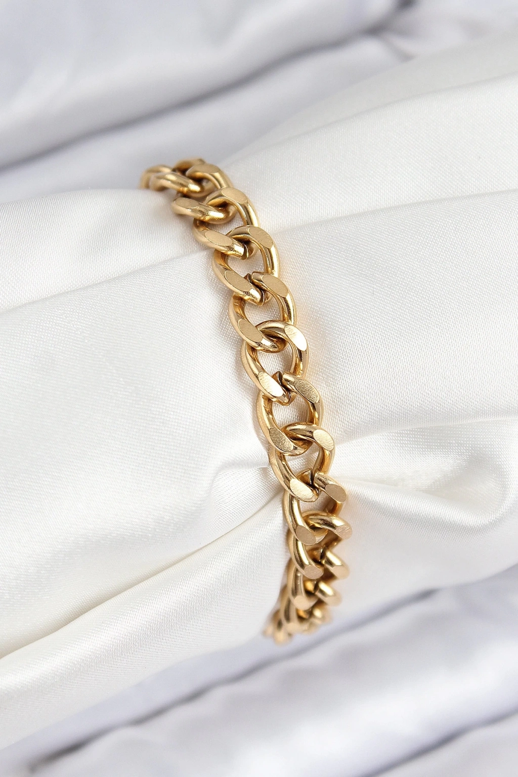 BFS 316L Çelik Klasik Kalın Zincir Model Gold Renk Kadın Bileklik
