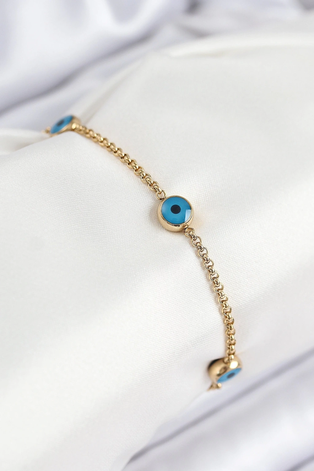 BFS 316L Çelik Nazar Boncuğu Model Gold Renk Kadın Bileklik