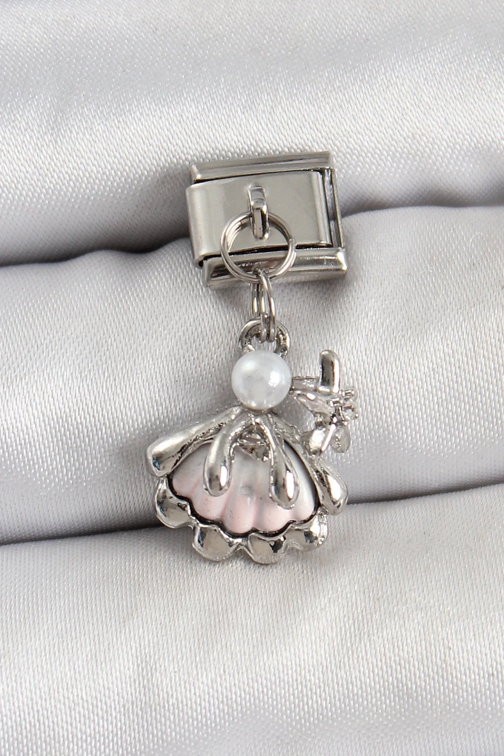 BFS 316L Çelik Sallantılı İnci Detaylı İstiridye Model Gümüş Renk Nomination Charm