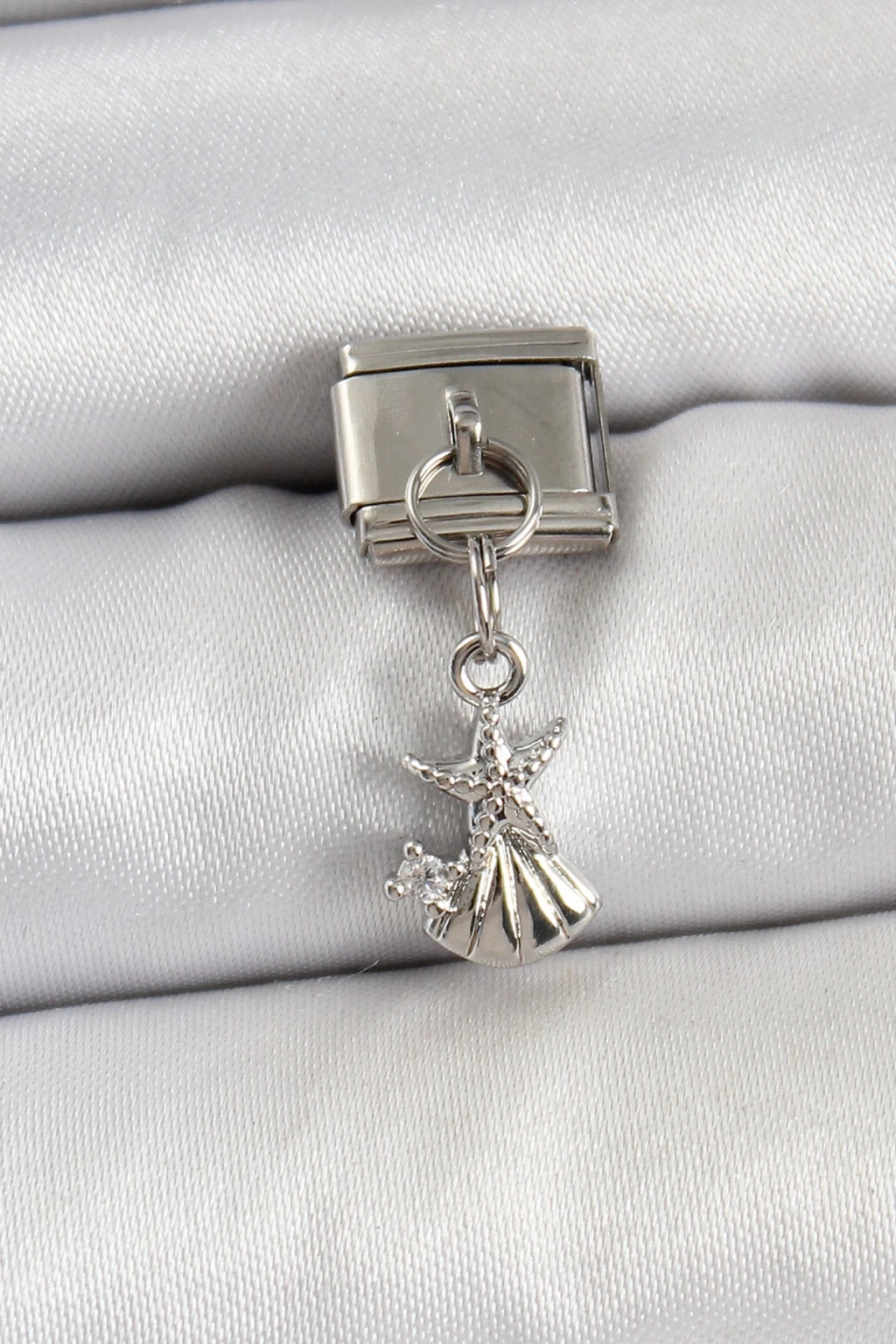 BFS 316L Çelik Sallantılı Zirkon Taşlı Deniz Yıldızı Ve İstiridye Model Gümüş Renk Nomination Charm