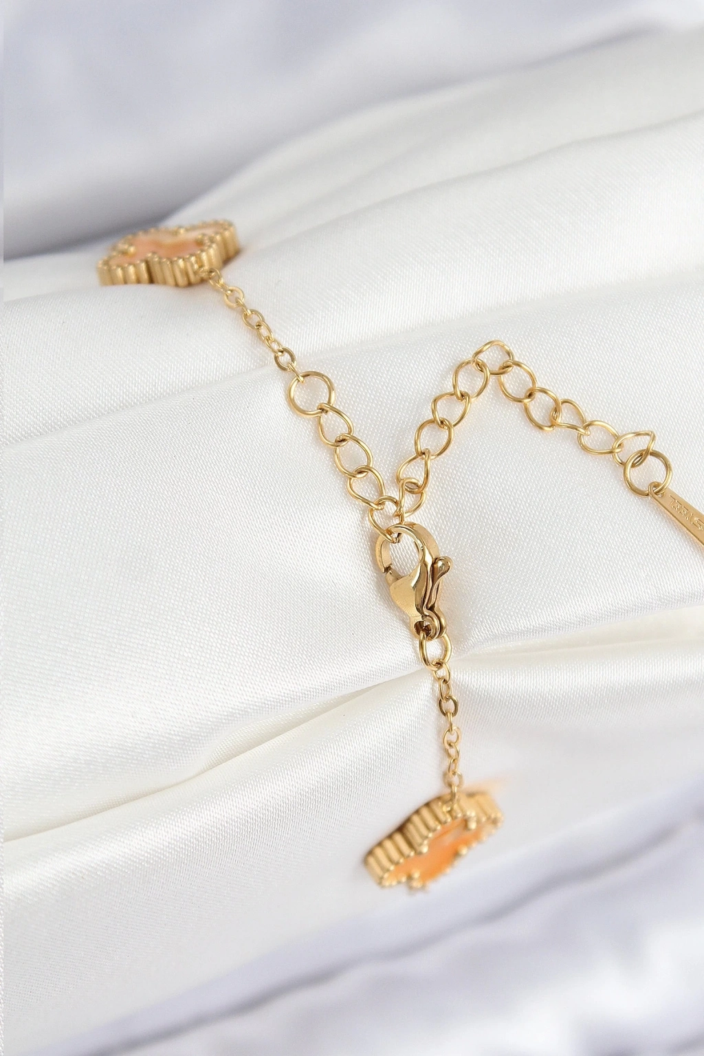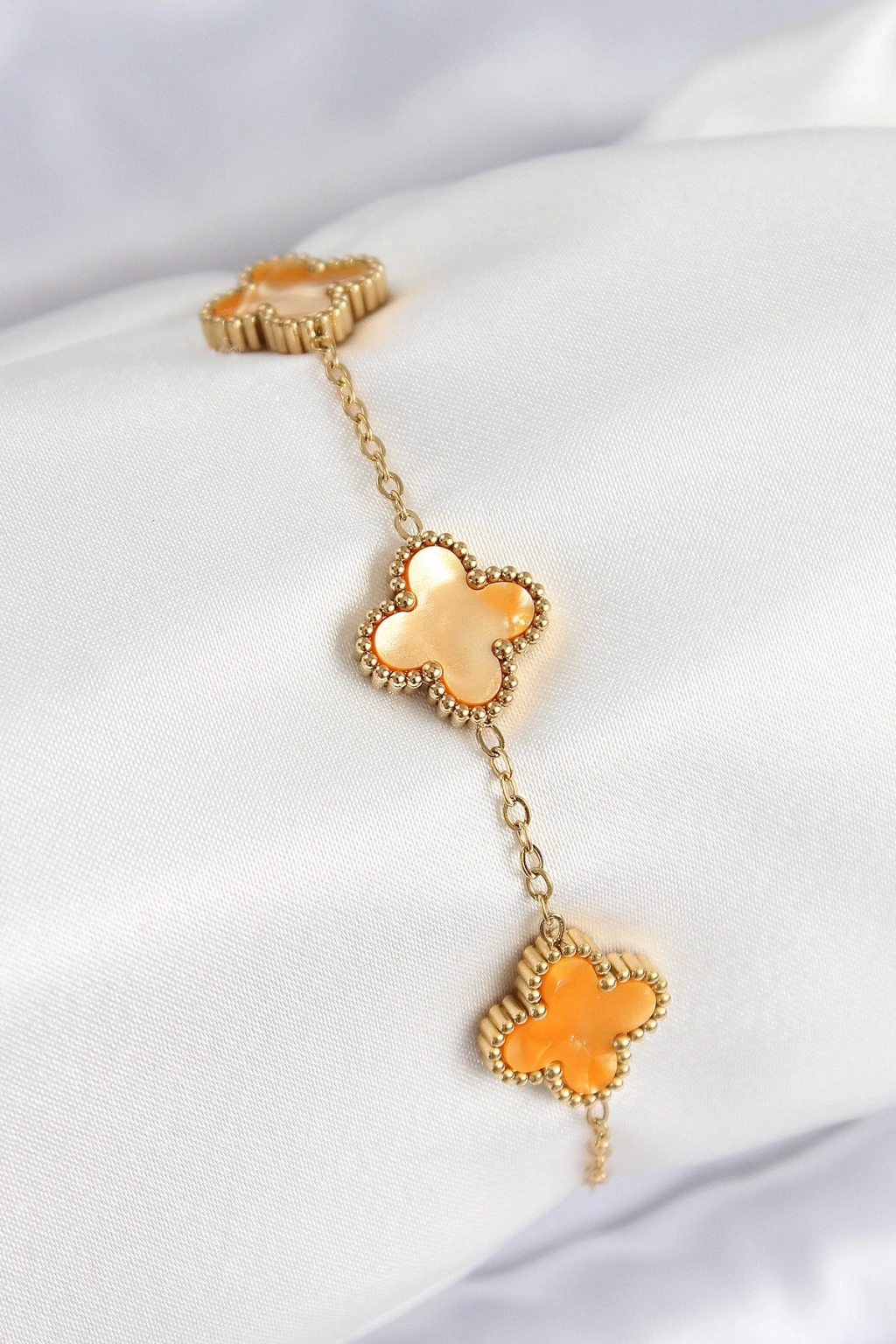 BFS 316L Çelik Sedefli Turuncu Gold Renk Yonca Kadın Bileklik