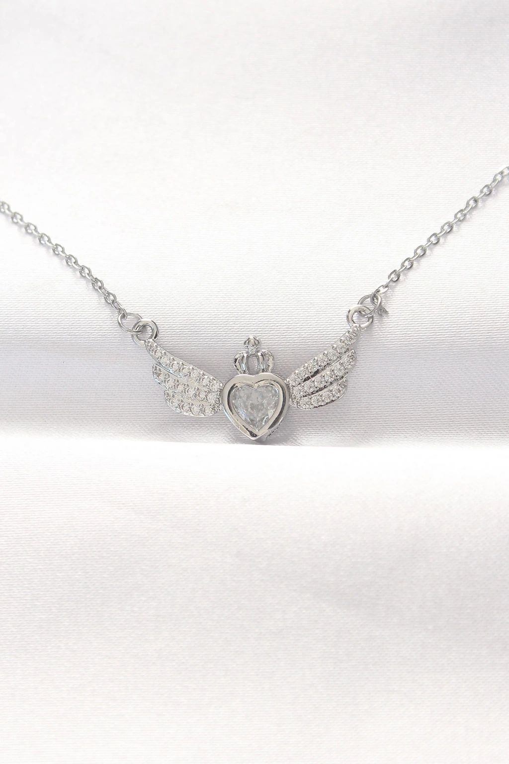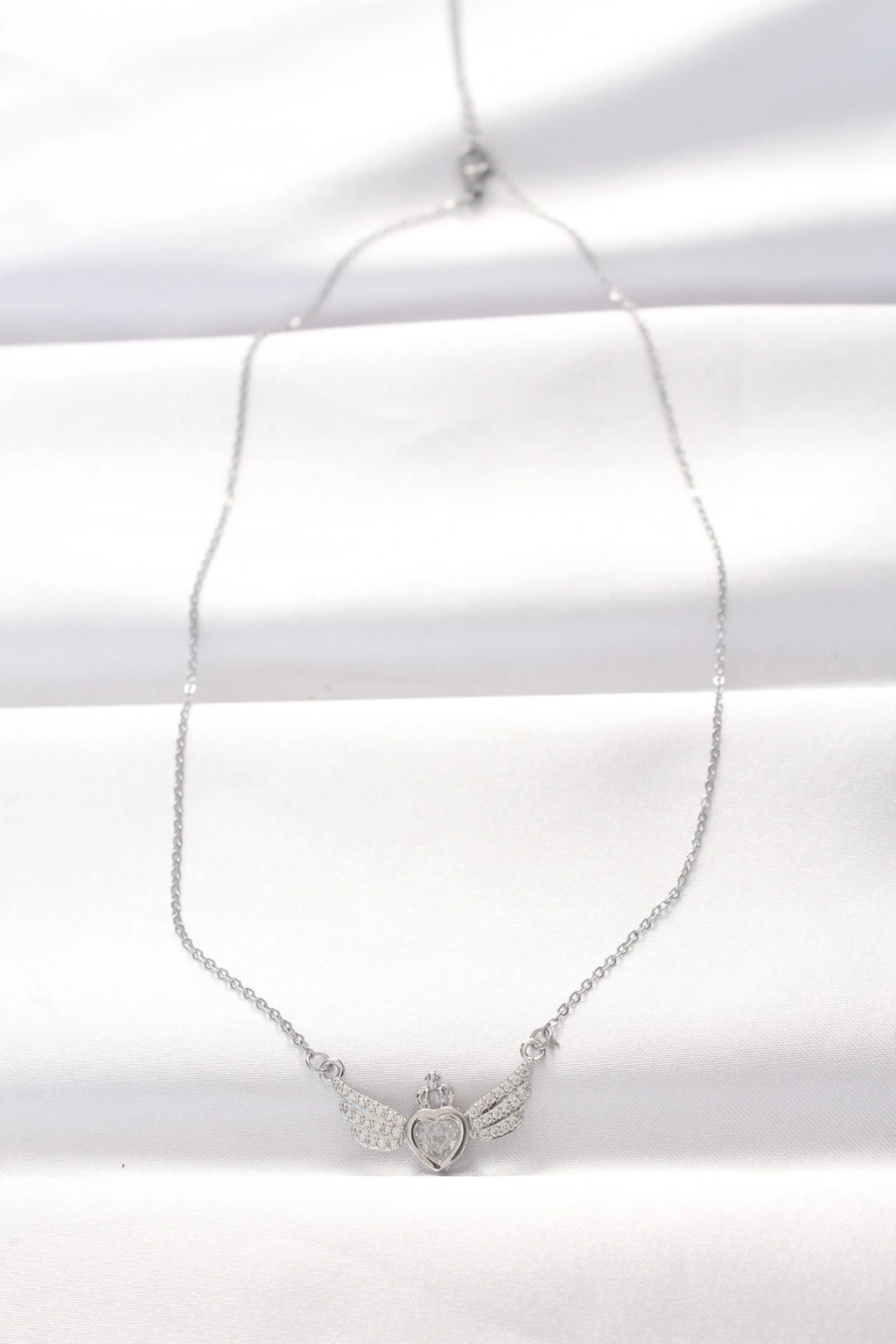 BFS 316L Çelik Silver Renk Zirkon Taşlı Kalpli Kanat Kolye