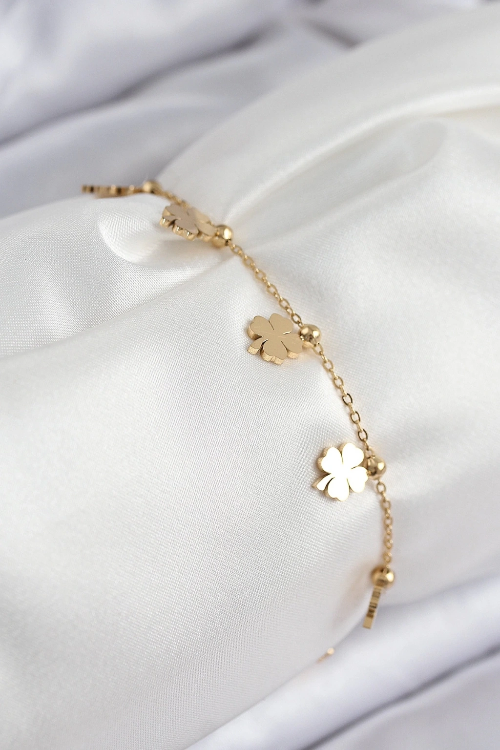 BFS 316L Çelik Sıralı Yonca Model Gold Renk Kadın Bileklik