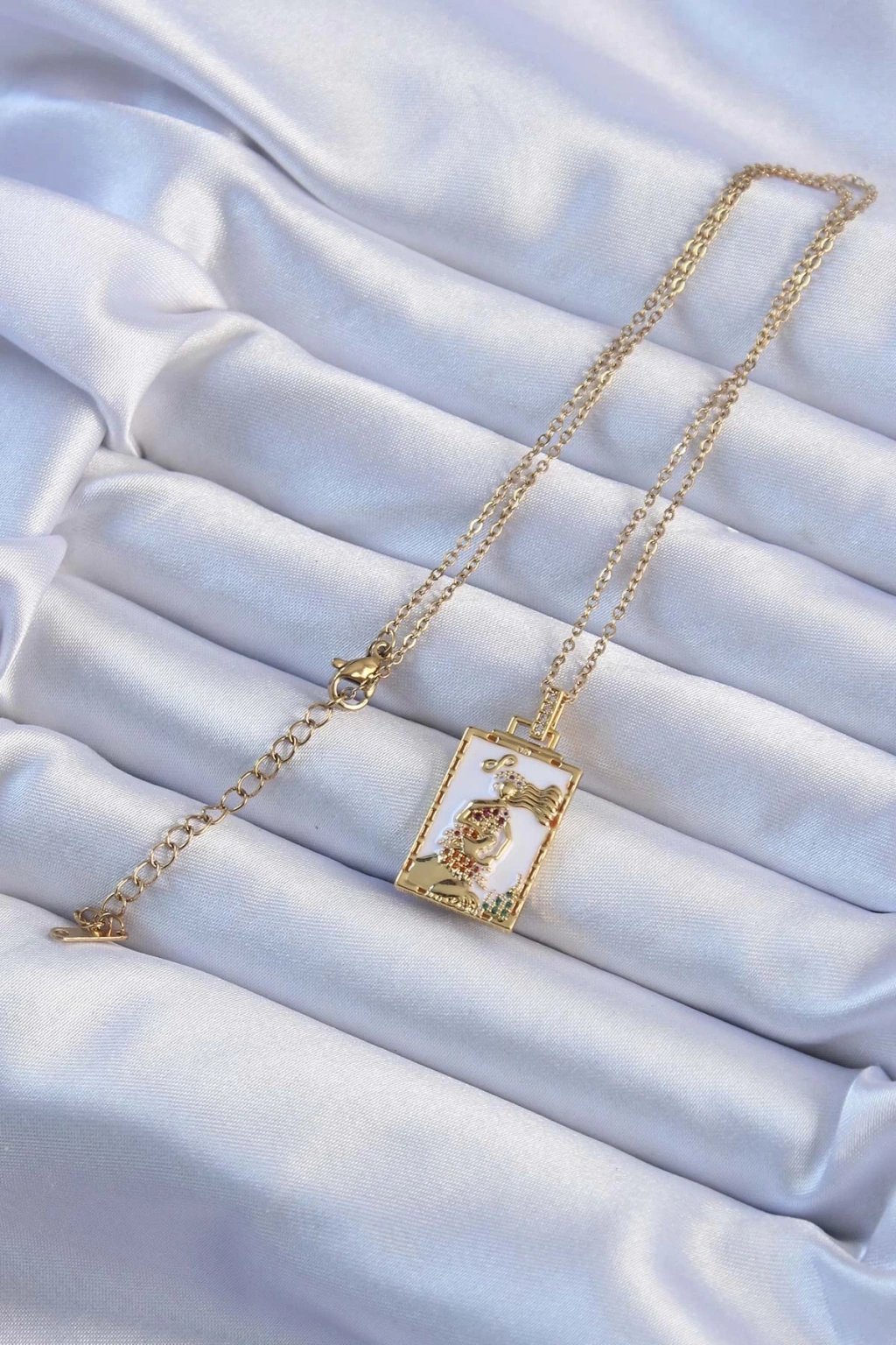 BFS 316L Çelik Zincir Altın Renk Beyaz Mineli Tarot Kolye