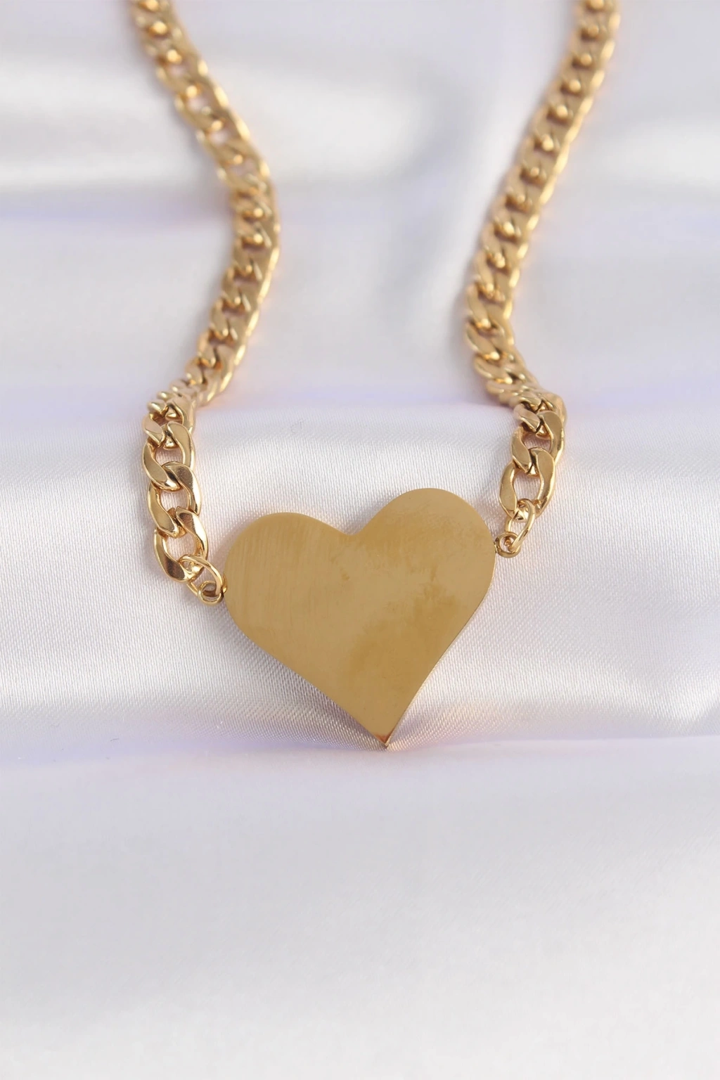 BFS 316L Çelik Zincir Altın Renk Düz Plaka Kalp Kolye