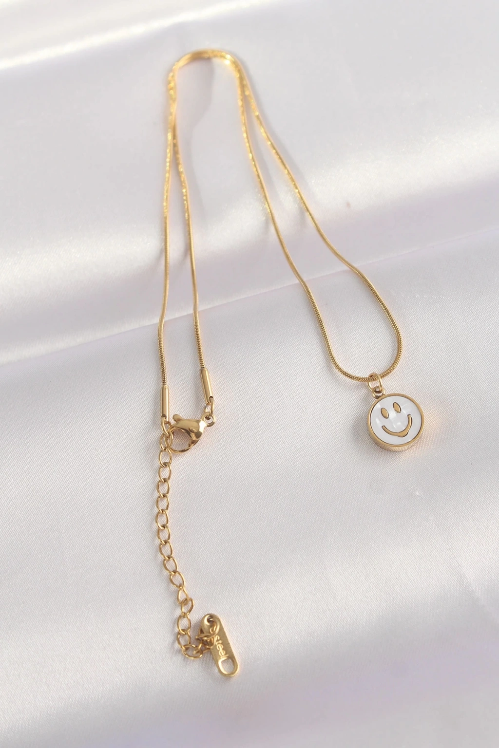 BFS 316L Çelik Zincir Altın Renk Mermer Desenli Minimal Smile Kolye