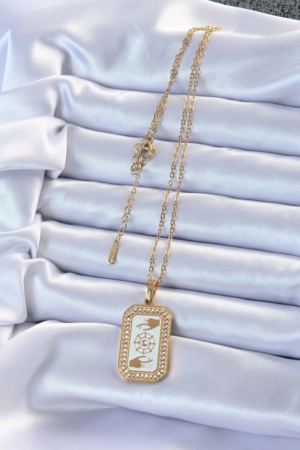 BFS 316L Çelik Zincir Altın Renk Mineli Zirkon Taşlı Göz Figür Tarot Kolye