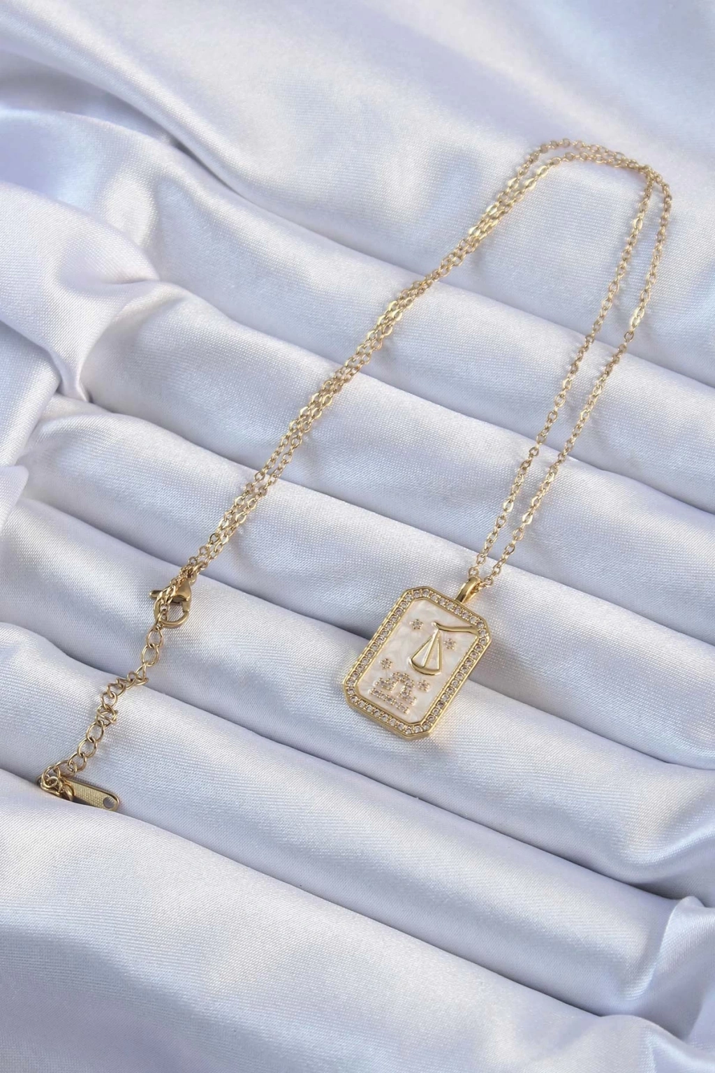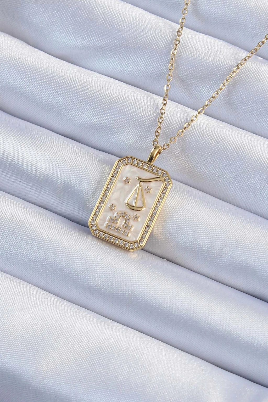 BFS 316L Çelik Zincir Altın Renk Zirkon Taşlı Çerçeveli Tarot Kolye
