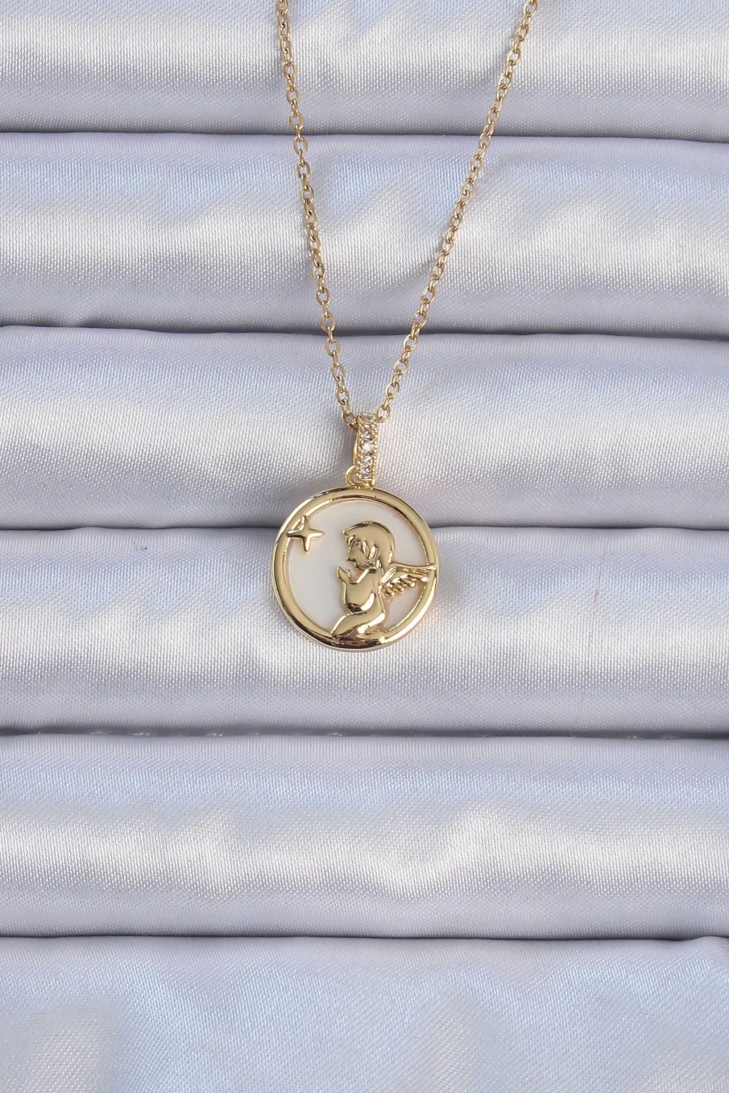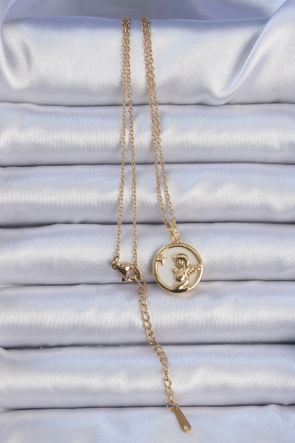 BFS 316L Çelik Zincir Altın Renk Zirkon Taşlı Mineli Melek Kolye