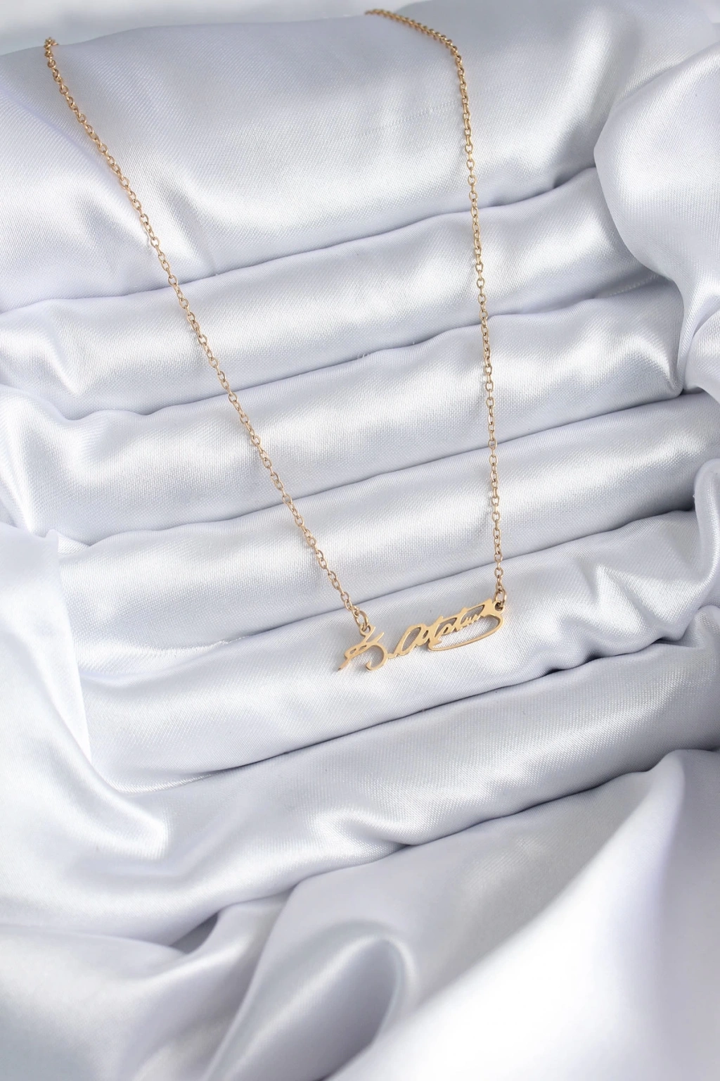 BFS 316L Çelik Zincir Gold Renk Atatürk İmzası Model Kadın Kolye