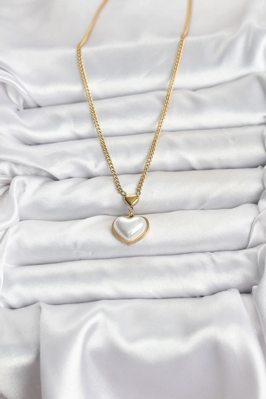 BFS 316L Çelik Zincir Gold Renk Bombeli Kalp Model Kadın Kolye