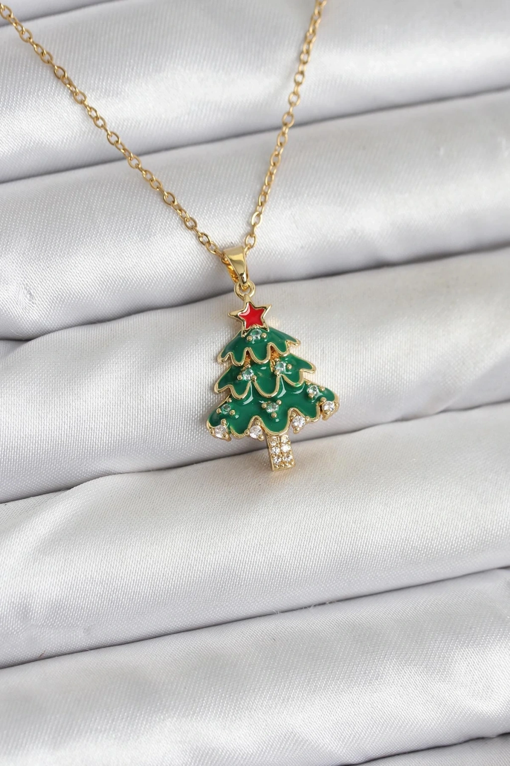 BFS 316L Çelik Zincir Gold Renk Çam Ağacı Model Yılbaşı Temalı Kadın Kolye