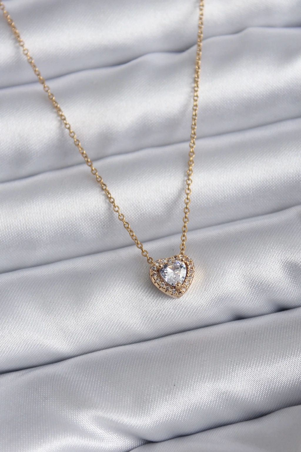 BFS 316L Çelik Gold Renk Zincir Sedefli Kalp Model Kadın Kolye