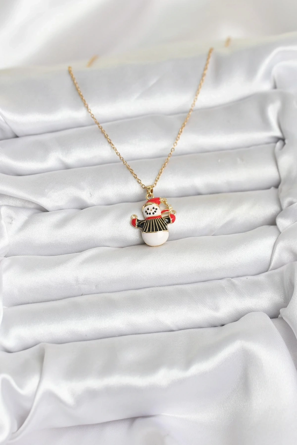 BFS 316L Çelik Zincir Gold Renk Kardan Adam Figürlü Yılbaşı Temalı Kadın Kolye