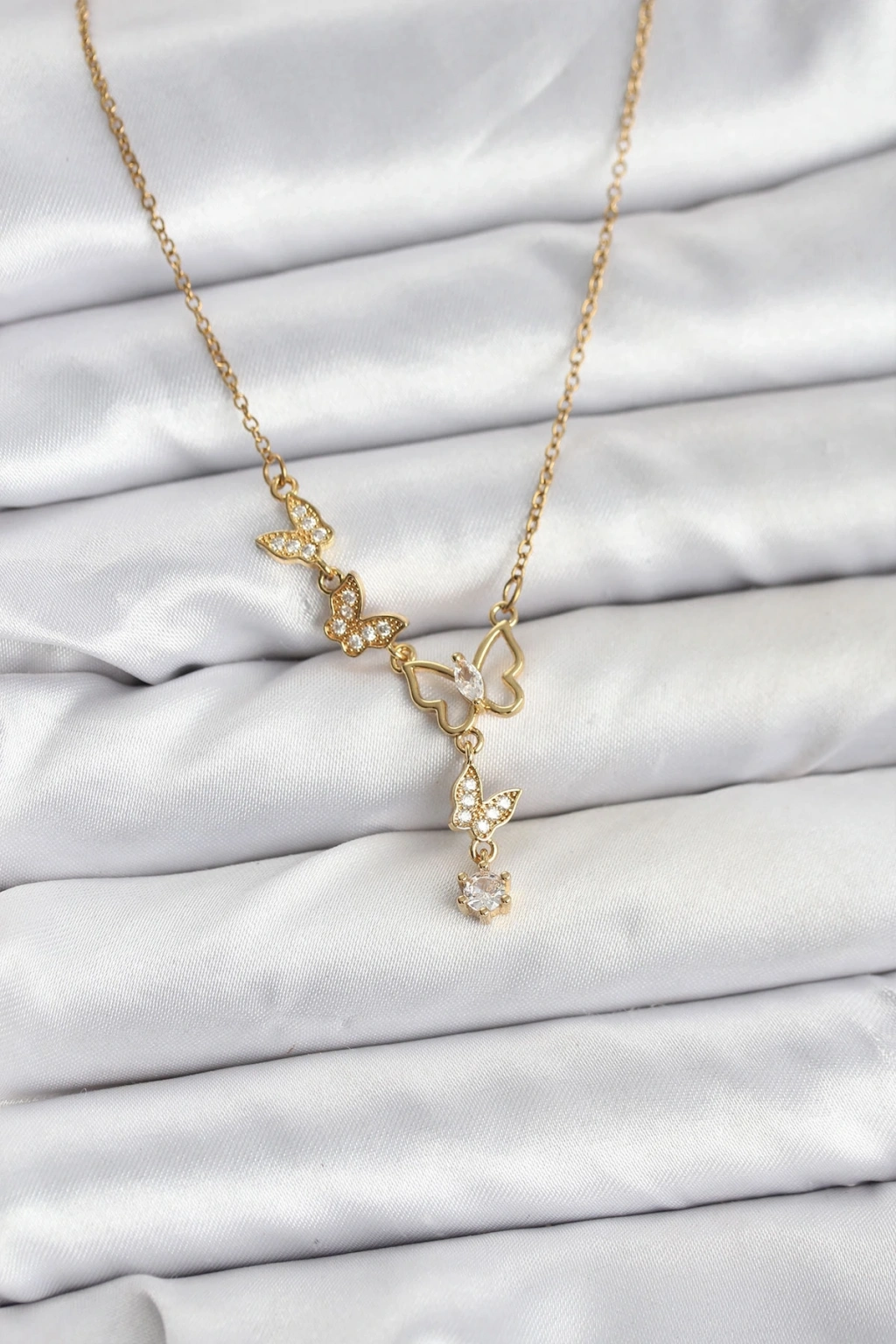 BFS 316L Çelik Zincir Gold Renk Kelebek Model Kadın Kolye