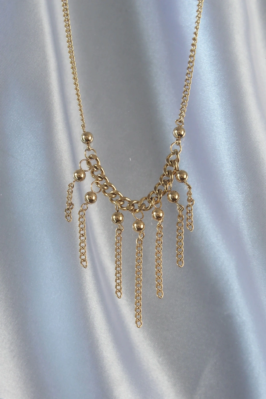 BFS 316L Çelik Zincir Gold Renk Topçuk Detay Sallantılı Zincir Kolye