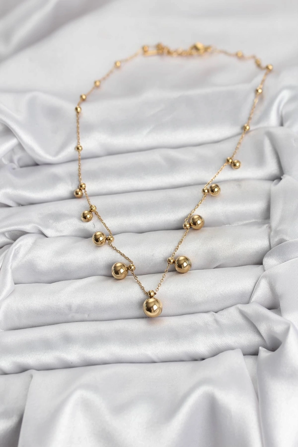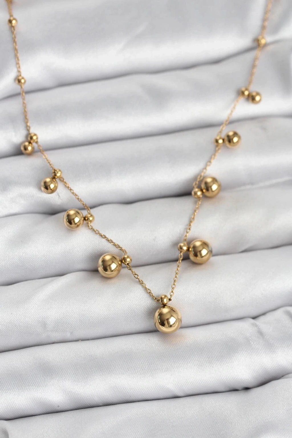 BFS 316L Çelik Zincir Gold Renk Topçuklu Kolye