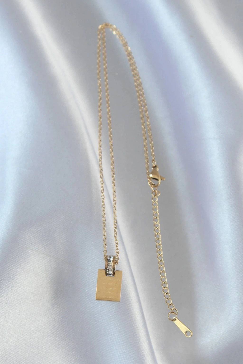 BFS 316L Çelik Zincir Gold Renk Zirkon Taşlı Aşk Mektubu Kolye