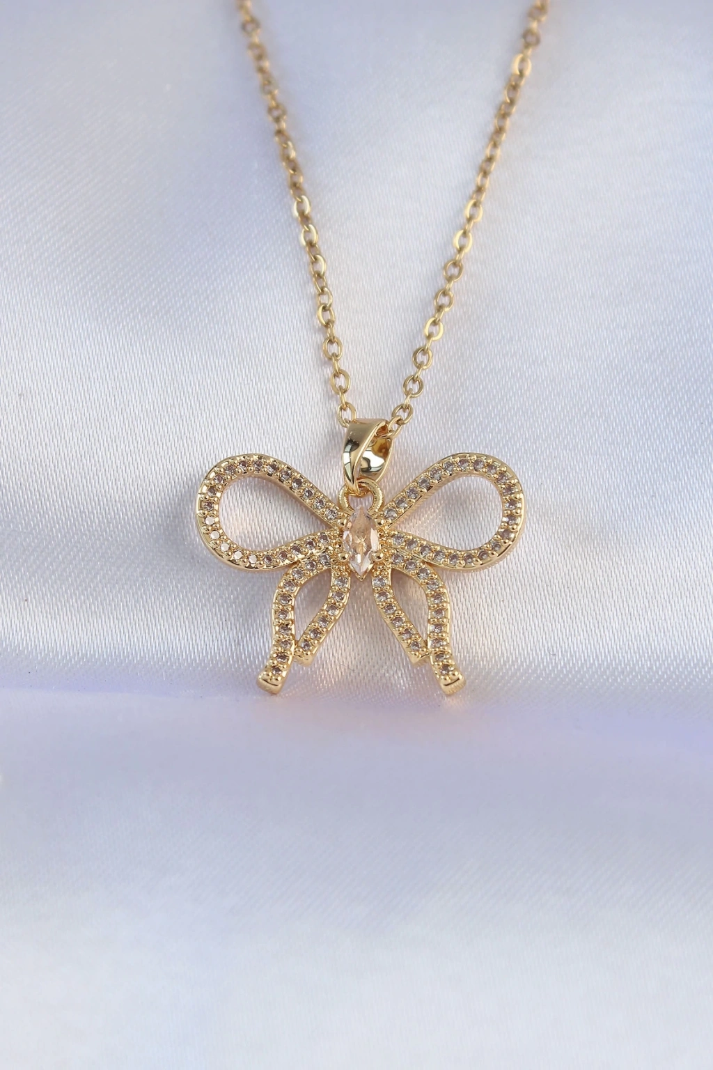 BFS 316L Çelik Zincir Gold Zirkon Taşlı Yılbaşı Tema Kadın Kolye
