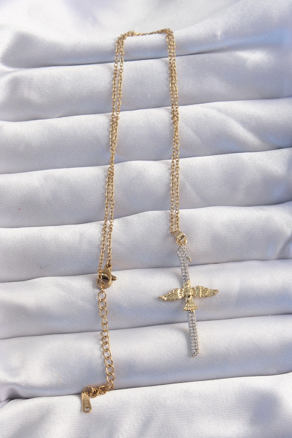BFS 316L Çelik Zincir Gold Renkli Zirkon Taşlı Anka Kuşu Kolye
