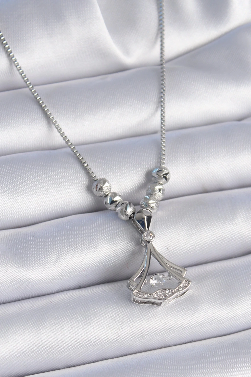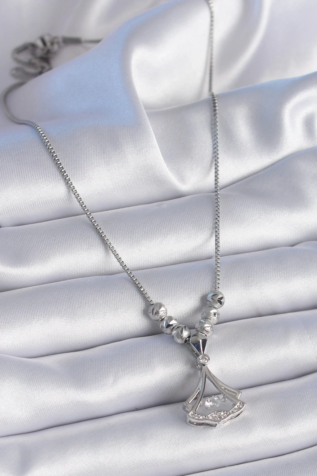BFS 316L Çelik Zincir Gümüş Zirkon Taşlı Yılbaşı Tema Kadın Kolye