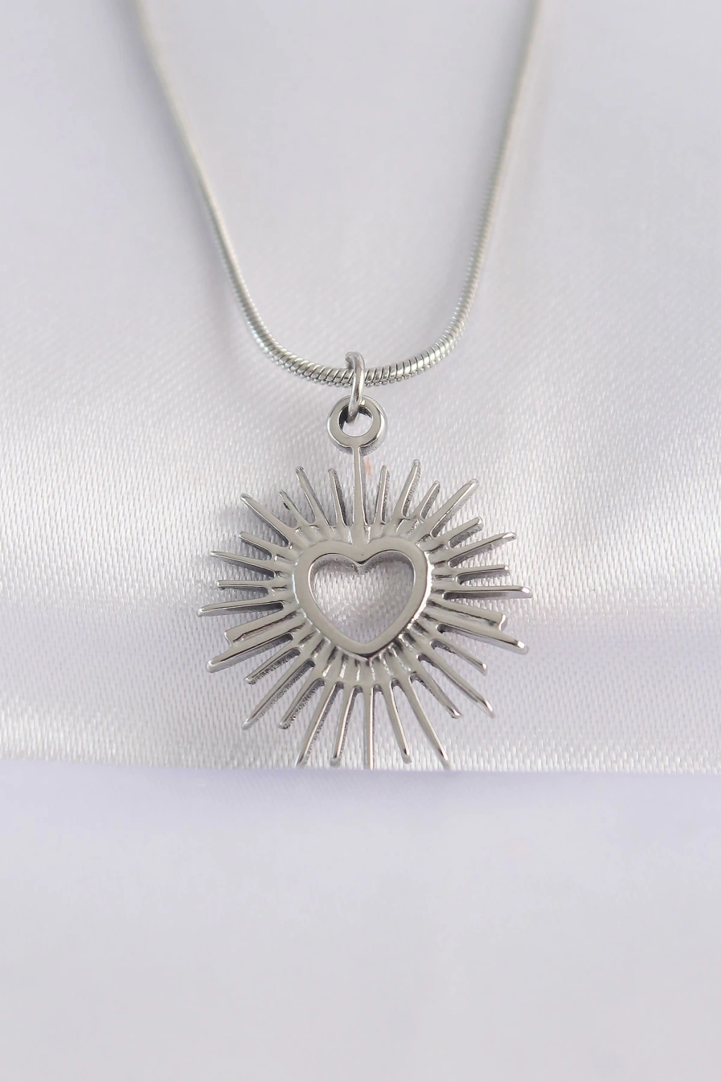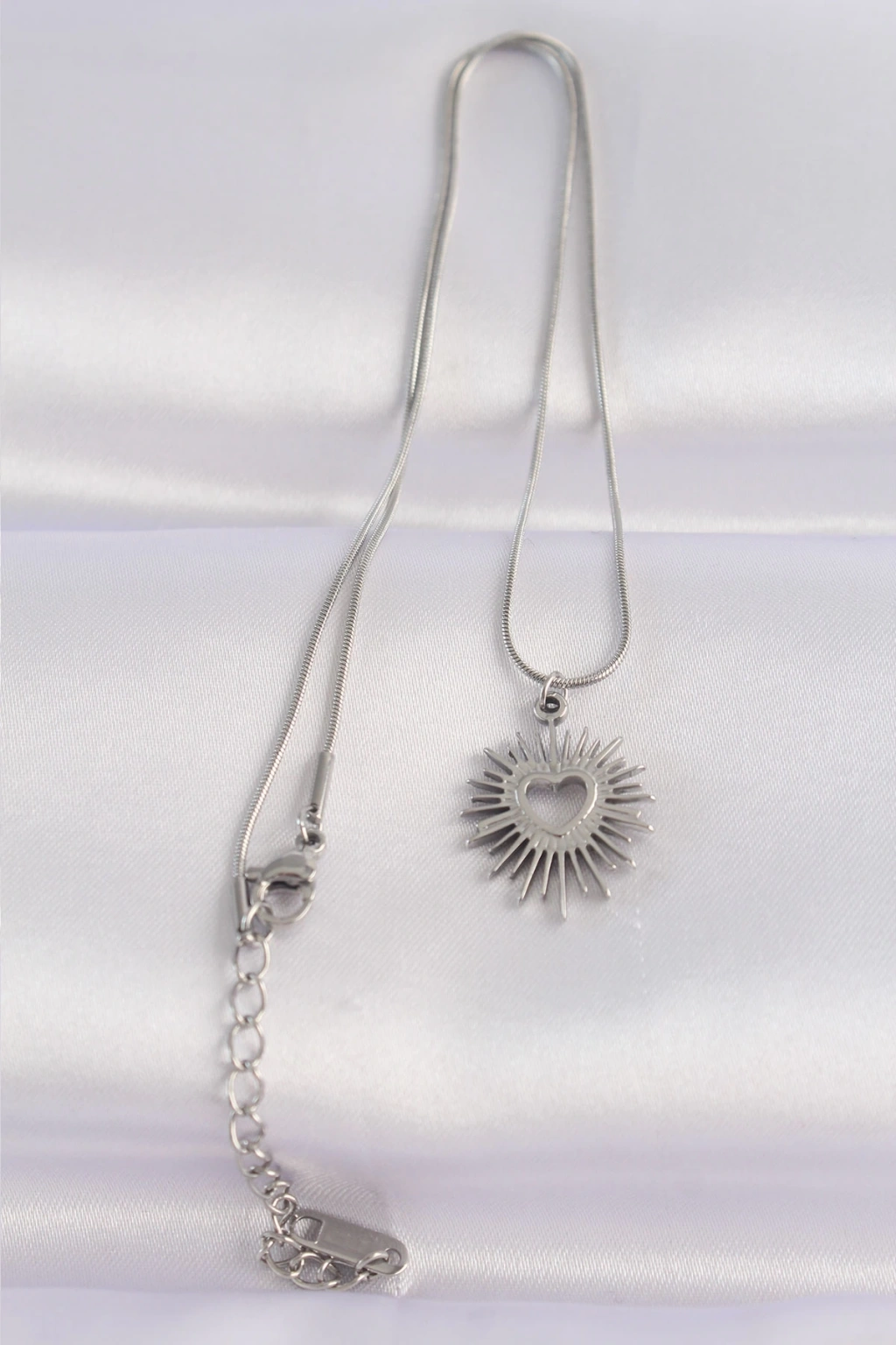 BFS 316L Çelik Zincir Gümüş Renk Kalp Güneşi Tasarımlı Kolye