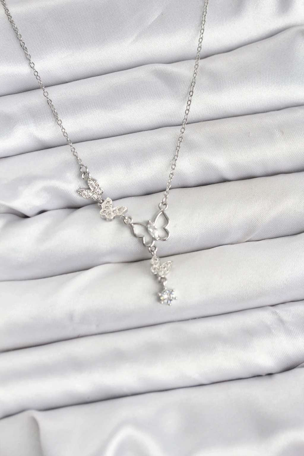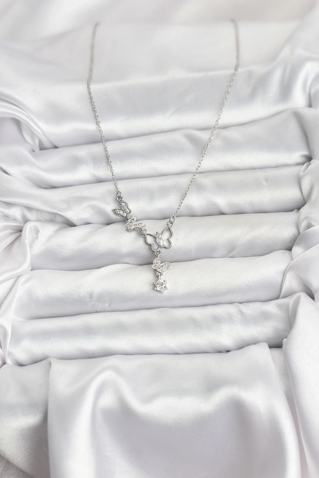 BFS 316L Çelik Zincir Gümüş Renk Kelebek Model Kadın Kolye