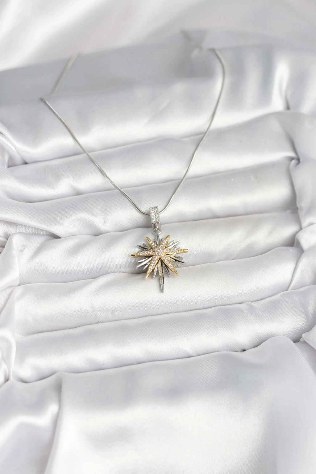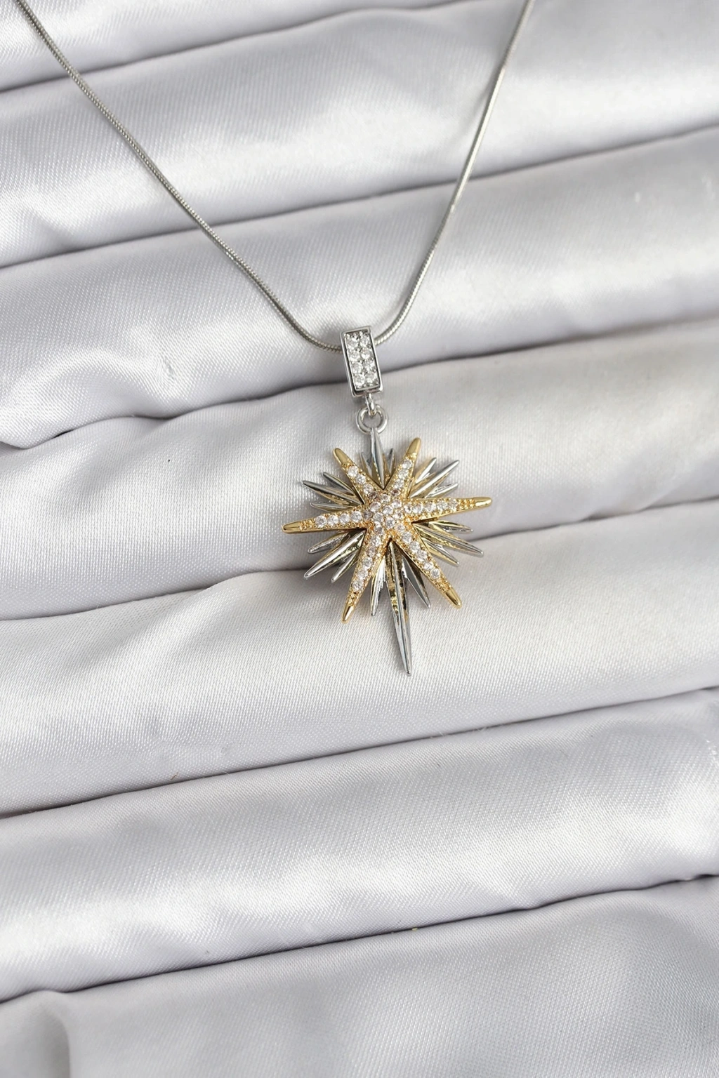 BFS 316L Çelik Zincir Gümüş Renk Kutup Yıldızı Model Kadın Kolye